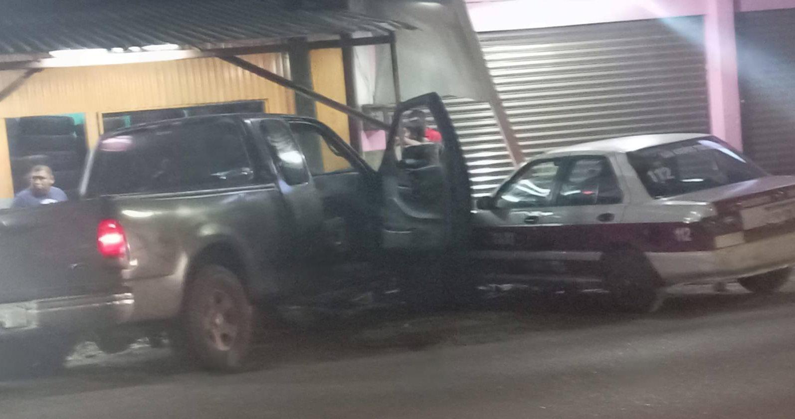 El conductor de la camioneta al perder el control de la dirección se salió del área de rodamiento y se impactó contra otro taxi marcado con el número 112, que se encontraba estacionado en una talachera donde le estaban brindando servicio, así como a una moto -