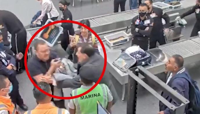 to de edad avanzada que lo agredió física y verbalmente, mientras una persona trataba de retirarlo del lugar, cuando esperaba un vuelo a Monterrey en una sala VIP.