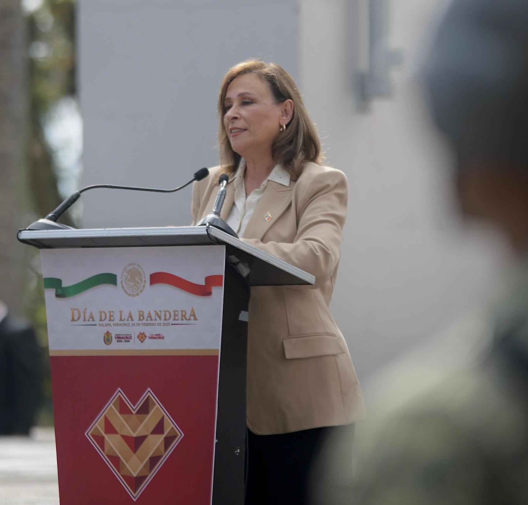 En acto solemne realizado en el parque Juárez, la gobernadora de Veracruz, Rocío Nahle García, encabezó la conmemoración del Día de la Bandera, destacando la importancia del símbolo patrio como emblema de la unidad y el orgullo nacional.