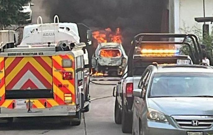 la avenida Díaz Mirón de la colonia Obrera. Vecinos del lugar reportaron el fuego que empezaba a consumir el vehículo marca Nissan tipo March.