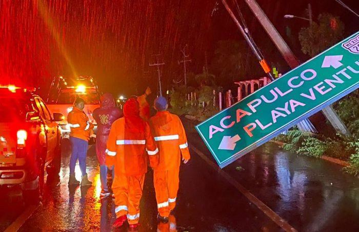 En los municipios de Copala, Cuajinicuilapa, Marquelia, Florencio Villarreal, San Marcos, Ayutla de los Libres, Ometepec, Atoyac de Álvarez, Cuautepec y Tlacoachistlahuaca, se reportaron incrementos en los niveles de agua, árboles caídos, postes y cableado de energía eléctrica derribados, daños extendidos por desprendimiento de techos, así como interrupciones en carreteras por derrumbes, árboles y señalamientos caídos, entre otros daños.