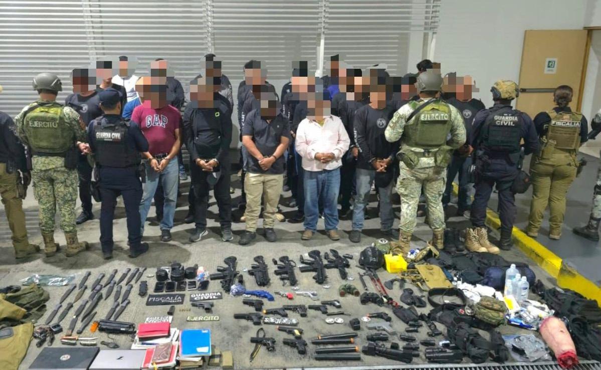 La Secretaría de Seguridad Pública (SSP) de Michoacán informó el aseguramiento de 38 hombres, entre ellos un ciudadano estadounidense, así como un arma corta y 19 réplicas de arma de fuego, armas blanca, equipo táctico, entre otros objetos.