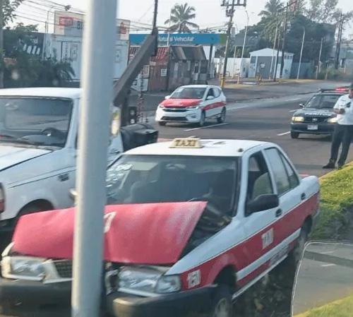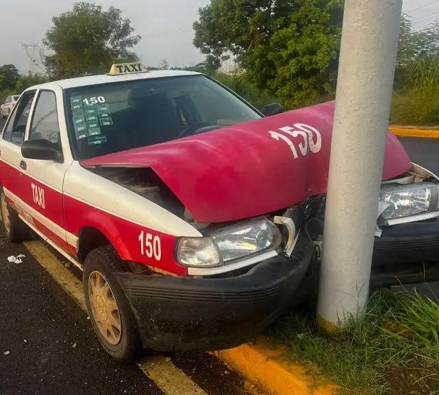 Taxi de Santiago Tuxtla se estrella contra luminaria en el puerto de Veracruz