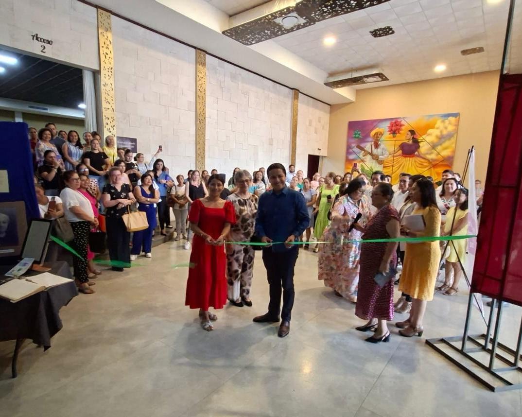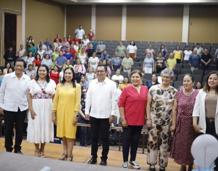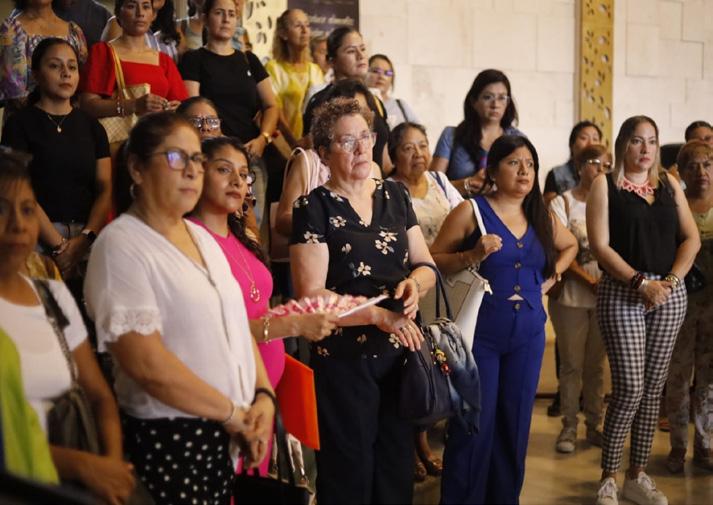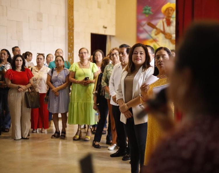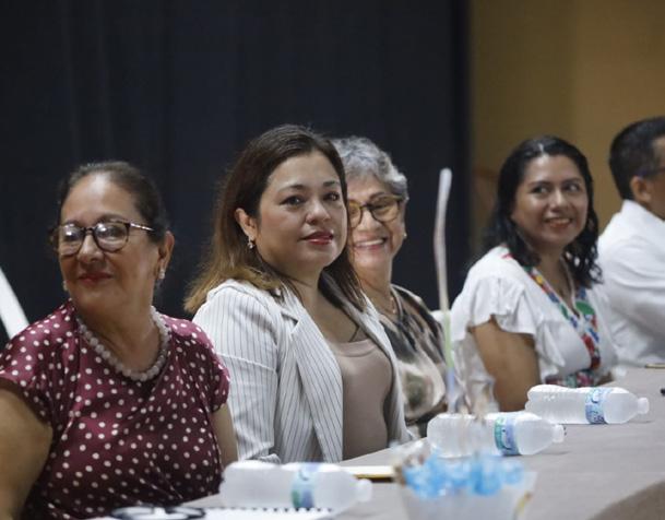 Luisa Fuentes Vergara, Responsable del Programa de seguimiento histórico de la educación preescolar en Veracruz, la licenciada María Elizabeth Salazar Fernández y el ponente, el cronista de la ciudad, el profesor Sixto Carvajal, quien dirigió su reseña histórica a los Jefes de Sector y supervisores de los diferentes niveles educativos, así como, Directores de los diferentes jardines de niños Federales y estatales, presentes en el recinto municipal.
