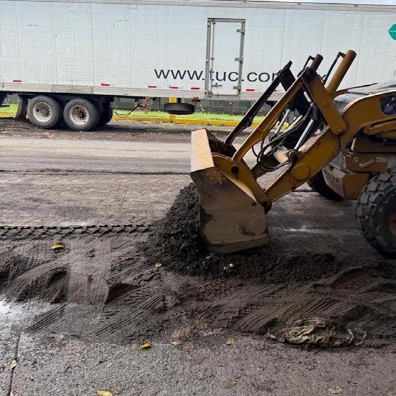 lizó labores de levantamiento de tierra y escombro en diversos puntos de la entrada de a la ciudad con la finalidad de garantizar una vialidad segura.
