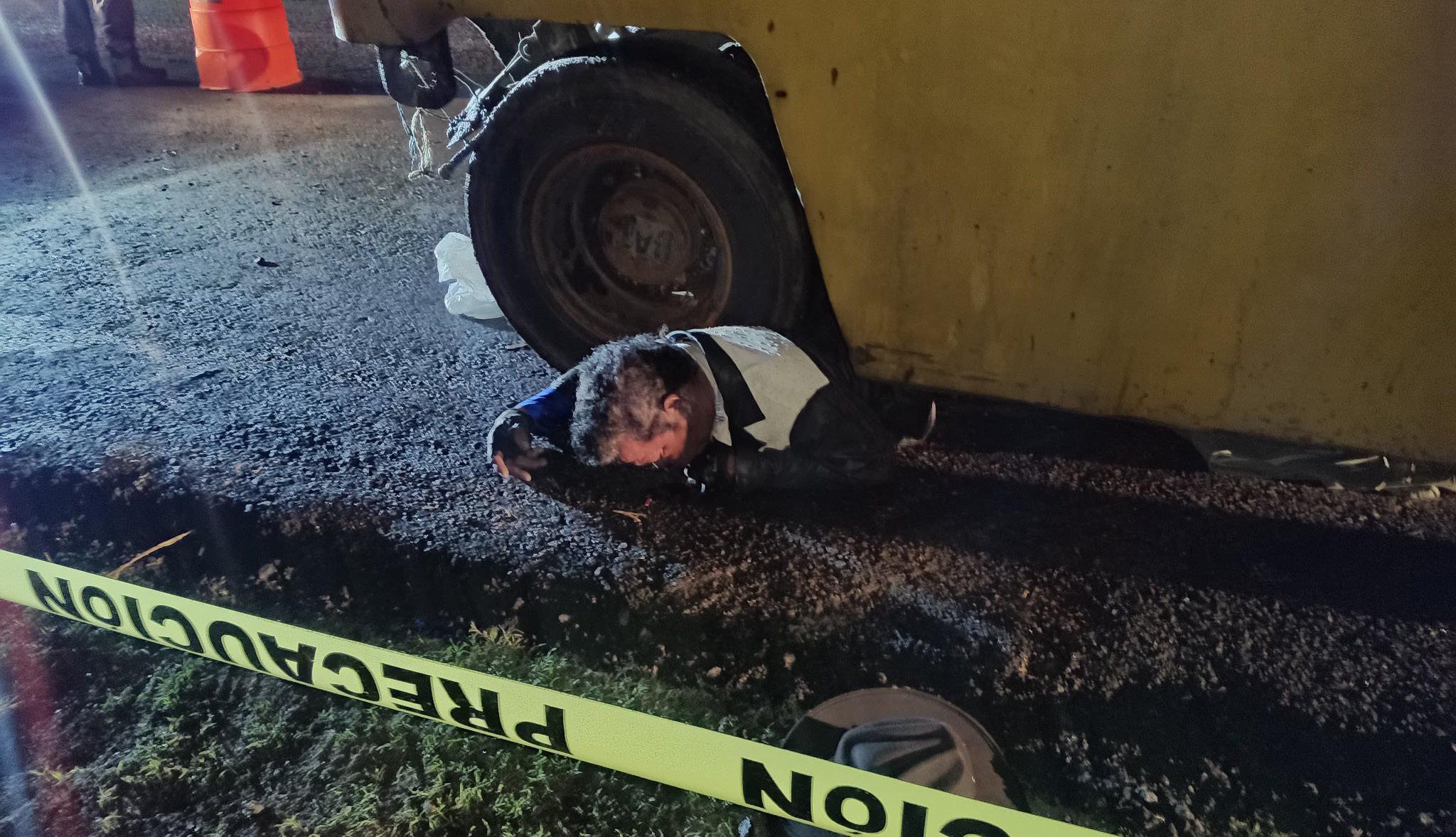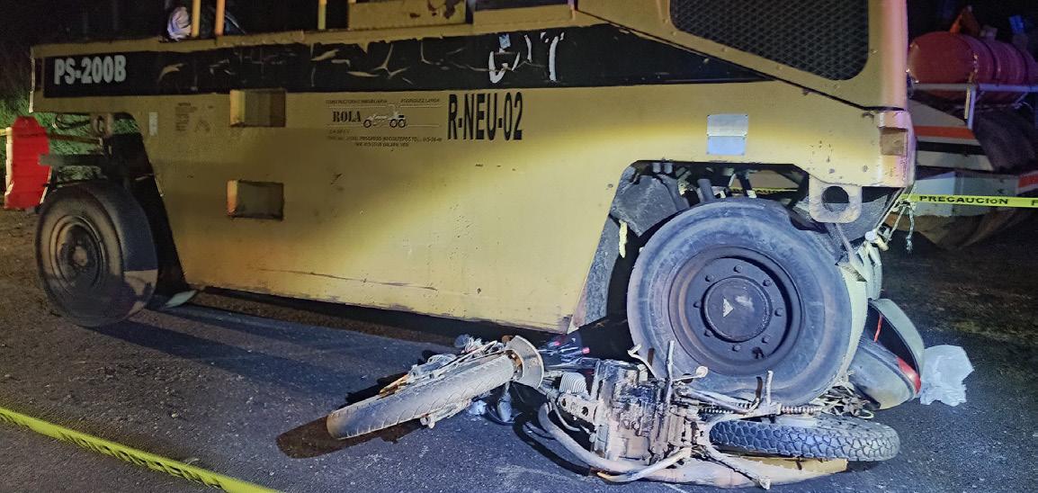 razones de seguridad. Mientras se desarrollaban las labores, la máquina utilizada para la rehabilitación del camino retrocedió y el operador no advirtió que el motociclista se encontraba detrás, ocasionando que la unidad lo arrollara. El hombre, cuyo nombre aún no ha sido confirmado, murió de manera instantánea. Integrantes de la Guardia Nacional delimitaron el área y dieron aviso a los especialistas de la Fiscalía General del Estado. Los peritos efectuaron las primeras investigaciones y dispusieron el levantamiento del cuerpo para su traslado al Servicio Médico Forense.