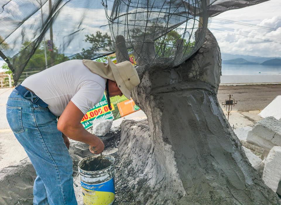 Avanza obra de la escultura alusiva al tegogolo en Catemaco