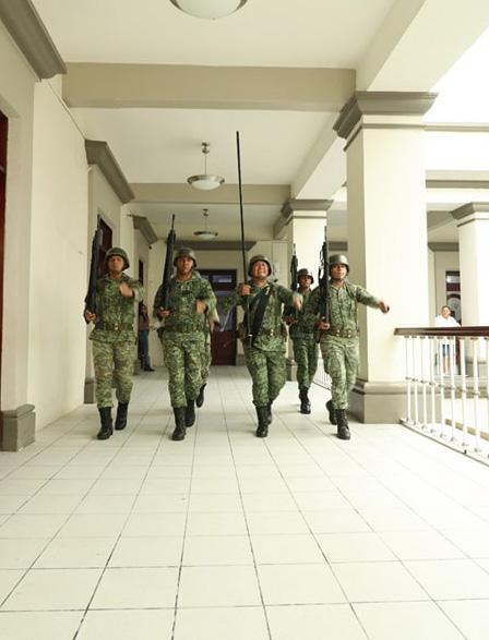 y banda de guerra del 1er. Batallón de Infantería de San Andrés Tuxtla, realizamos el ensayo para la ceremonia solemne del grito de independencia.