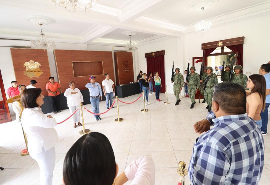 Alcaldesa de San Andrés Tuxtla realiza ensayos para la ceremonia solemne del grito de independencia