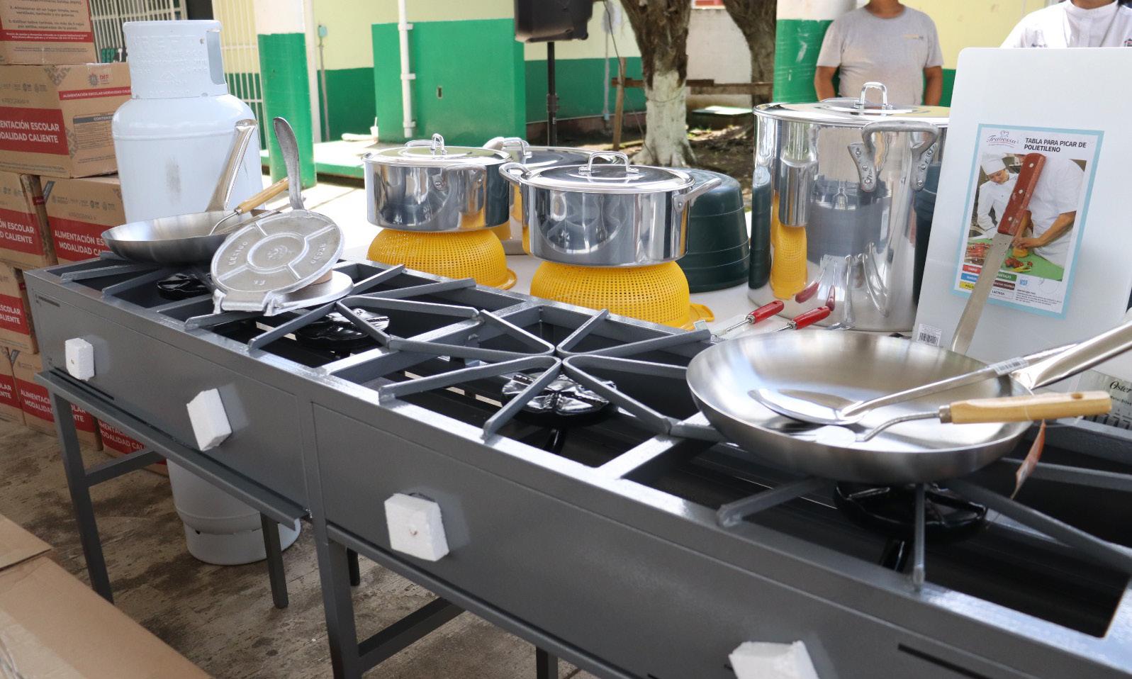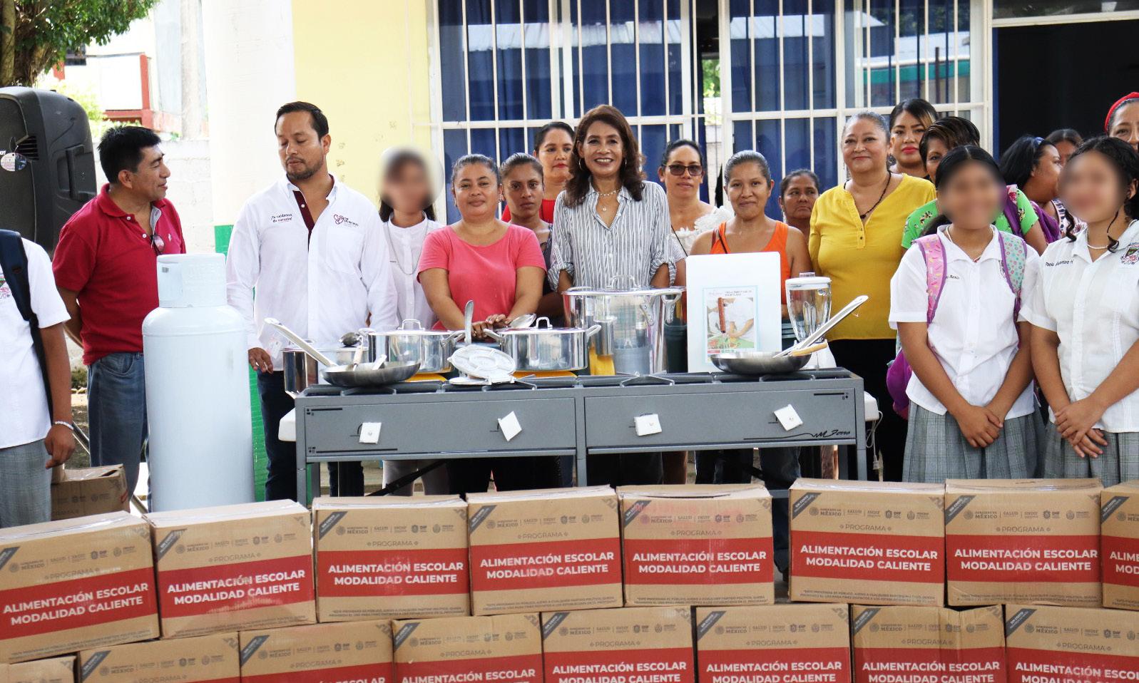 Se entregaron insumos alimentarios del programa del DIF Estatal Veracruz Oficial #DesyunosEscolares en su modalidad calientes. Además de otorgar una estufa ecológica con equipo de cocina ideales para la coperativa de la secundaria, facilitando a los encargados de la alimentación escolar las herramientas necesarias para brindar comidas saludables y deliciosas.