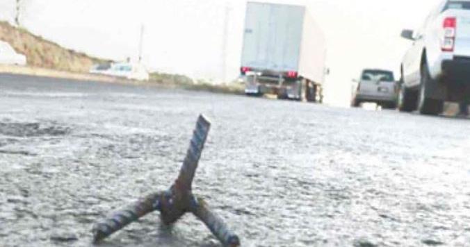 taron que infractores de la ley están aventando en la vía de comunicación clavos gruesos entrelazados, los llamados ponchallantas.
