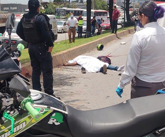 Un trágico accidente se registró al medio día de este lunes cuando un motociclista que derrapó sobre la avenida Lázaro Cárdenas, perdió la vida, sobre el carril que comunica a Las Trancas, en Xalapa