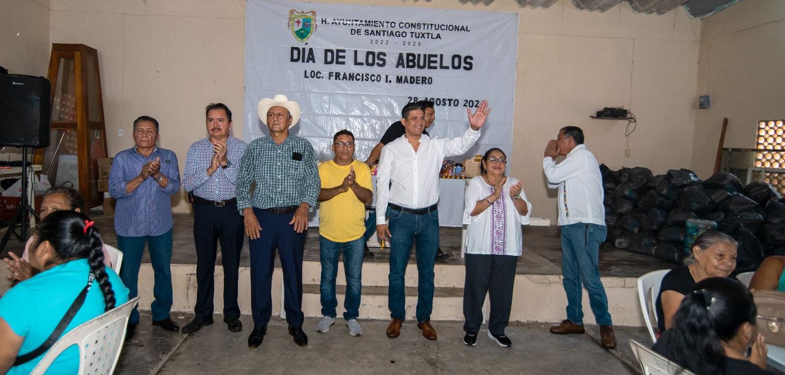 Copete, Presidente del DIF Municipal de Santiago Tuxtla, festejó el Día de los Abuelos, con adultos mayores de la localidad de Francisco I. Madero, donde convivió con ellos y reconoció la importancia dentro de la familia, siendo uno de los pilares fundamentales en