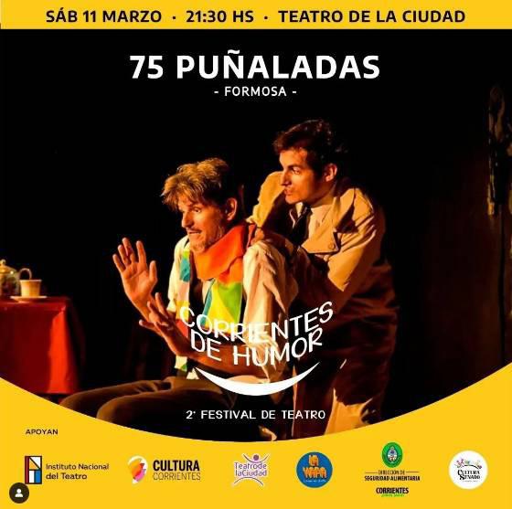 Sótano, del grupo Imágenes (Misión Laishí) y 75 puñaladas, del grupo Los Miastocos (Formosa capital) son las dos obras que desde hoy al domingo participan del 2° Festival de Teatro Corrientes de Humor, junto a producciones de Brasil, Chaco, Misiones, San Luis y Corrientes. El objetivo del Festival es aunar esfuerzos en la región NEA de grupos y propuestas de espectáculos de humor, que se puedan realizar en salas y espacios no convencionales, buscando el acercamiento del público a este género teatral.