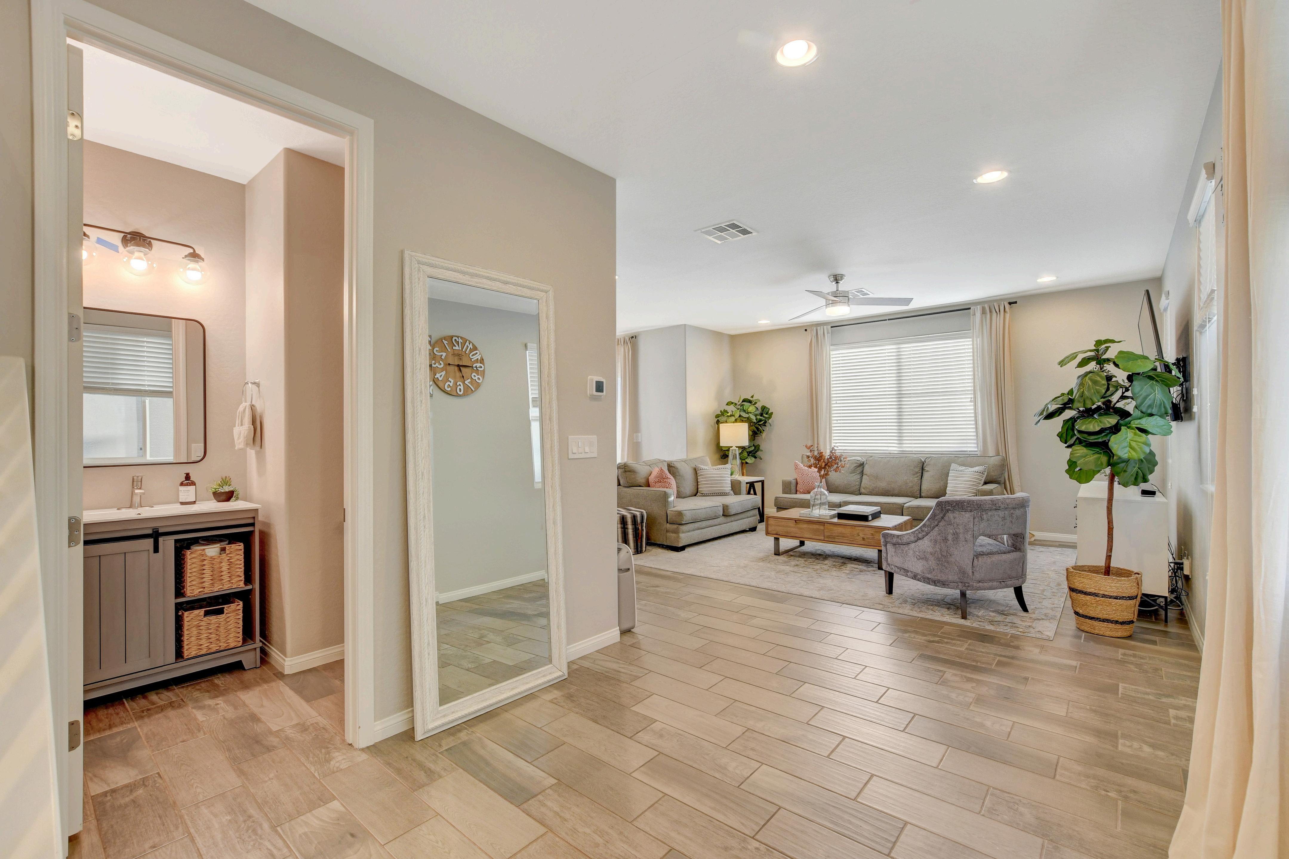 E L E G A N T L Y U N D E R S T A T E D I N T E R O R S F e a t u r n g n e u t r a c o o r p a l e t t e s a n d p r a c t c a y e t s t y s h f n i s h e s T h e s p a c o u s l v n g r o o m s d e f n e d b y w o o d - i k e p a n k t l e f o o r i n g i n a s t a g g e r e d b r c k w o r k p a t t e r n a n d a n o p e n l a y o u t h a t e n h a n c e s t h e s e n s e o f s p a c e w h e t h e c o m p a c t b a t h r o o m e f f i c e n t y u s e s t s a r e a w t h a r e f i n e d m n i m a l i s t v a n i t y a n d a m p e g h t n g T o g e h e r t h e s e r o o m s s h o w c a s e a b e n d o f c o m f o r t a n d m o d e r n a e s h e t c s e n s u r n g a h a r m o n i o u s v n g e n v r o n m e n t