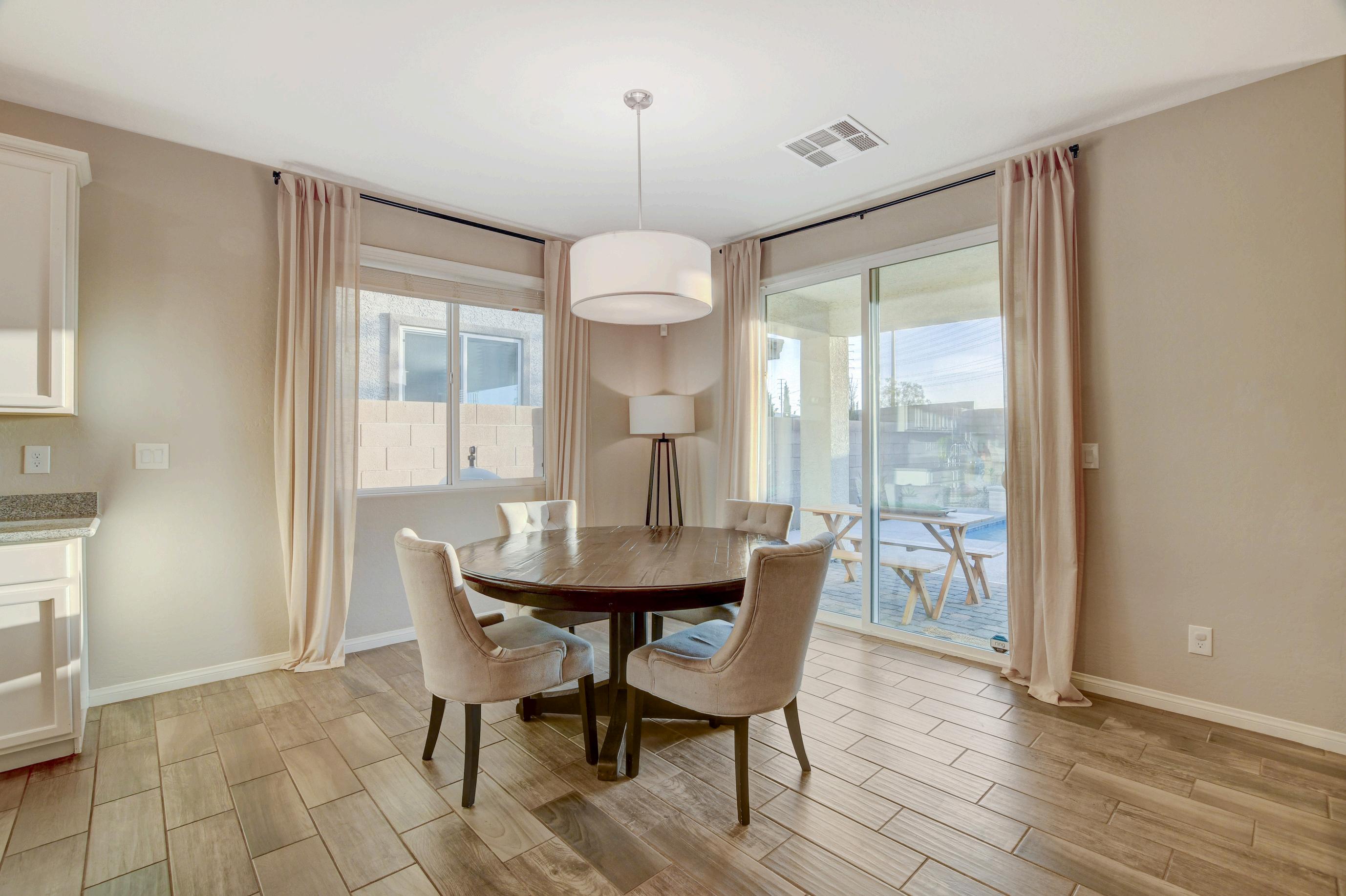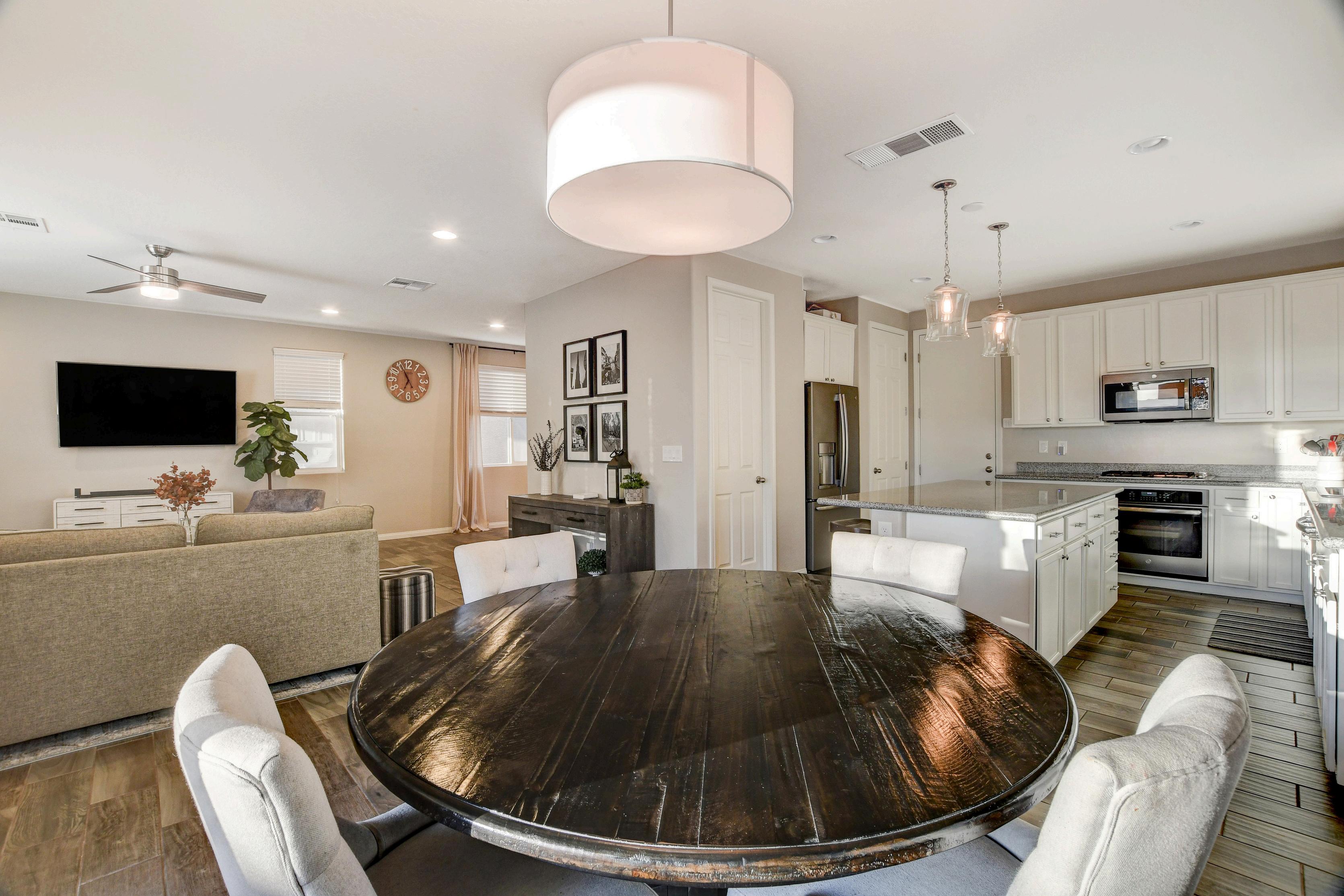 S h o w c a s n g a g r a c e f u y d e s i g n e d d i n n g a n d k i t c h e n a r e a t h s s p a c e s c h a r a c t e r z e d b y h a r m o n o u s f o w a n d a b u n d a n t n a t u r a l g h t C o n t i n u o u s p l a n k t e f l o o r i n g c o m p e m e n t s t h e n e u t r a c o o r p a l e t t e o f t h e w a s a n d c a b n e t r y e n h a n c n g t h e c o h e s v e a e s t h e t i c A m o d e r n d n i n g s e u p i s s t r a t e g c a y p l a c e d p r o v i d n g a f o c a p o n b e t w e e n t h e k t c h e n a n d a n o u t d o o r v e w n g a r e a a c c e s s i b e v i a s l d i n g g l a s s d o o r s E e g a n t l i g h n g f i x u r e s a b o v e t h e k t c h e n i s l a n d a n d d n i n g t a b l e n o t o n y l u m n a t e t h e s p a c e b u t a s o a d d a o u c h o f s o p h s t i c a t o n