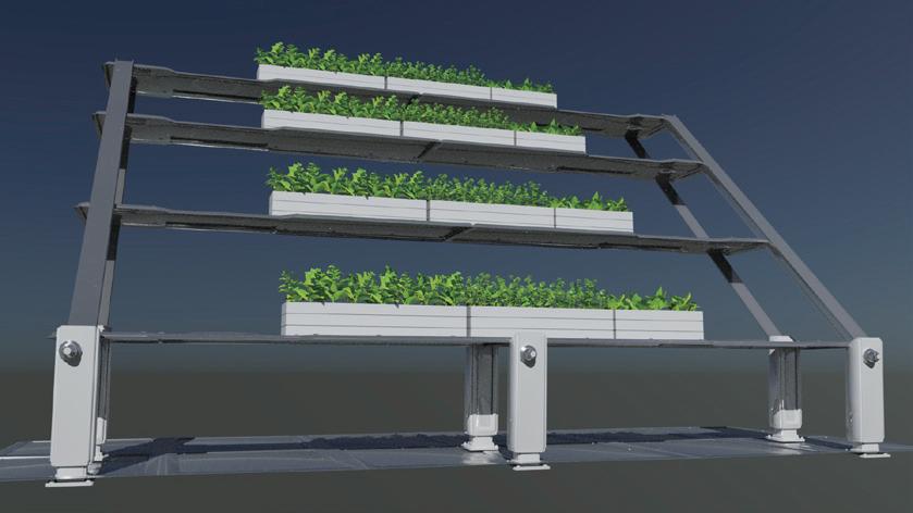 Vertical farms are production systems that produce agricultural products at vertically stacked levels or integrated in other structures, such as skyscrapers, warehouses or shipping containers. The idea behind vertical farming is to use indoor farming techniques and environmental controls to create the arti cial environment plants need to grow. The technologies included are: arti cial lighting, environmental control (humidity, temperature, carbon dioxide gas, etc.), and water and fertilizer control. In addition to growing crops, some systems have developed a self-sustaining method of aquaponics. Water from the plants is recycled into the tanks, and the sh waste becomes fertilizer for the plants. Finally, plants and sh can be harvested for food.