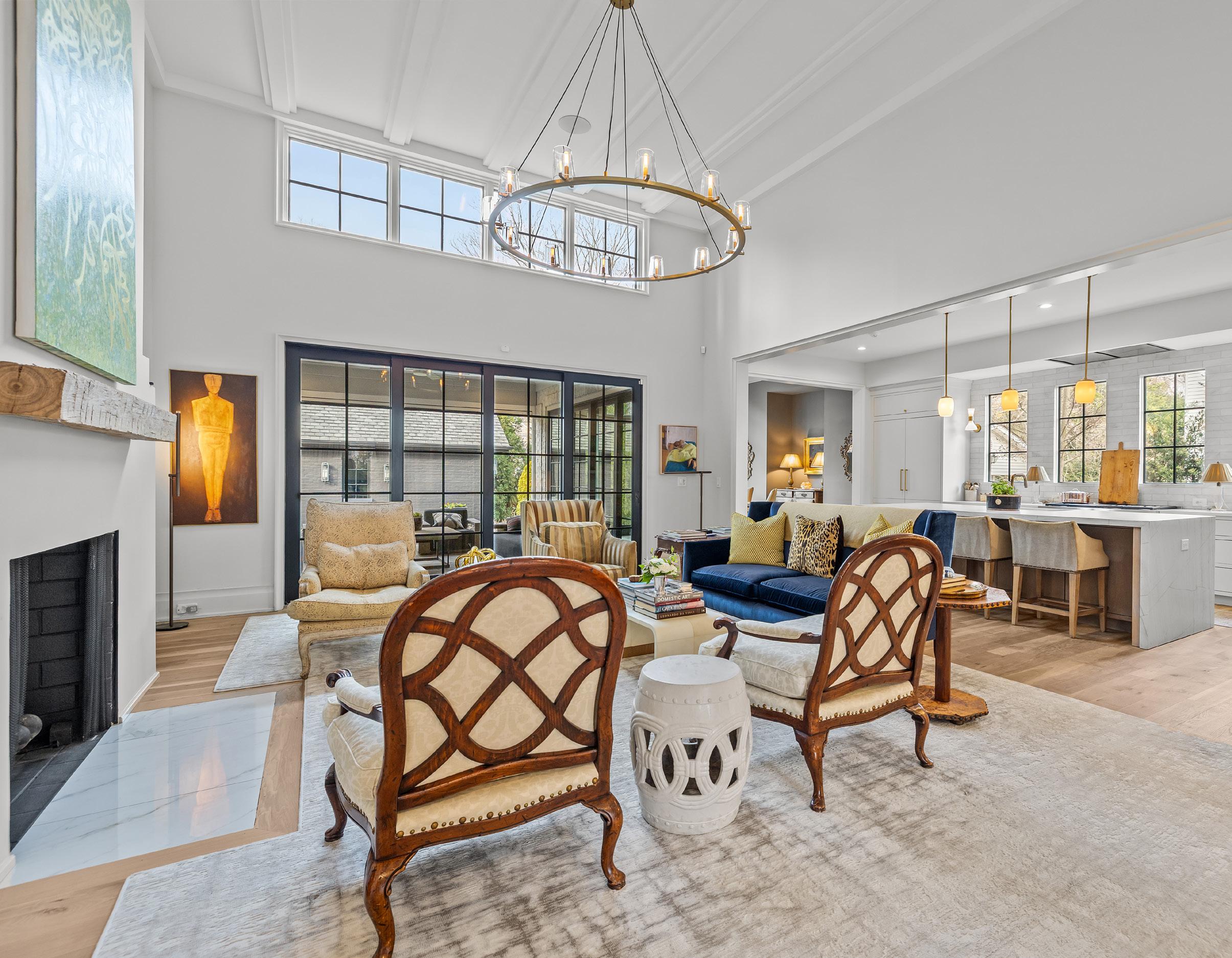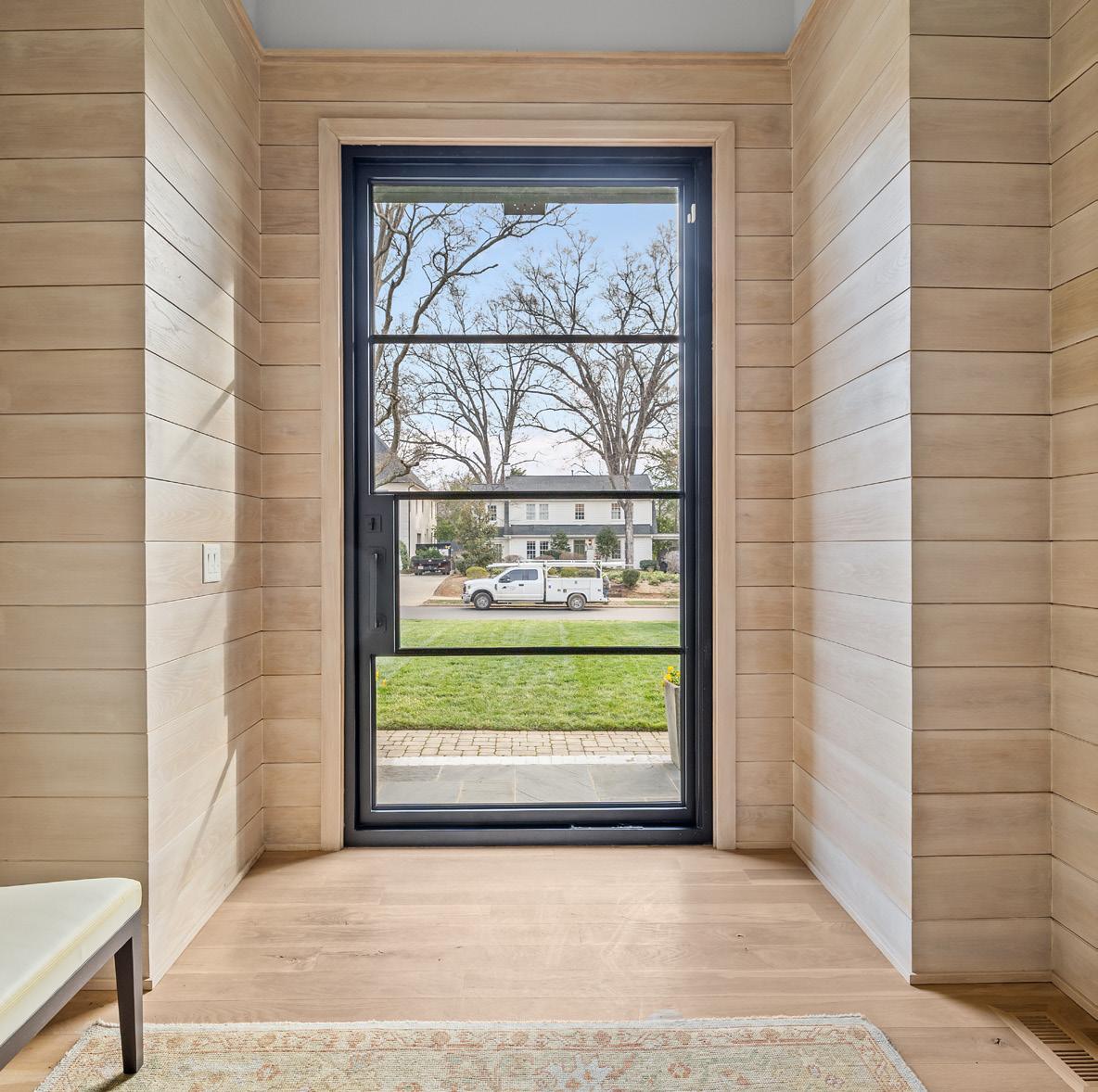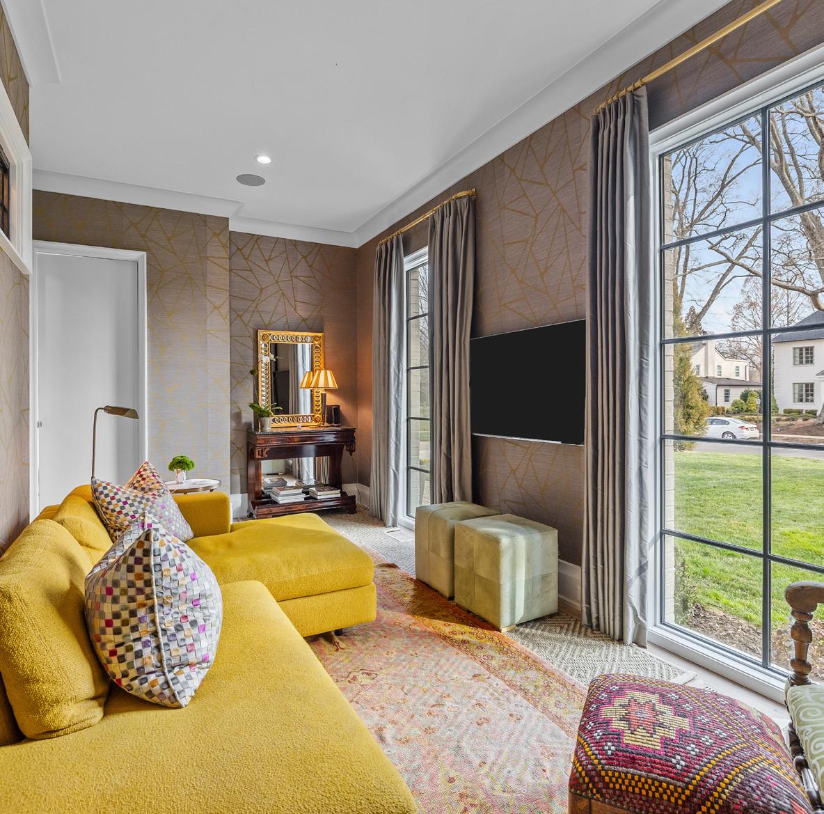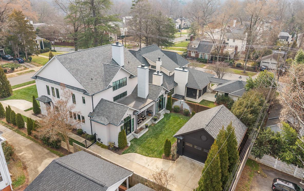 An EXQUISITE EASTOVER custom built residence blending timeless architecture with modern luxury. Curb appeal features tumbled brick, metal windows, bluestone accents, curated landscaping, and a dramatic steel-and-glass pivot entry door. Inside, light-filled interiors showcase white oak hardwood floors, custom trim, whitewashed shiplap, exposed beams, and soaring ceilings. The Great Room boasts 15’ ceilings, transom windows, a custom fireplace with reclaimed white oak mantel, and a concealed Hall library with built-in shelving. Sliding glass walls in the Great and Dining Rooms open to a covered terrace with bluestone flooring, ceiling fan, and masonry fireplace, ideal for indoor-outdoor entertaining. The open chef’s kitchen features a gray-washed white oak waterfall island with Lavezzi leathered quartzite countertops, Silestone perimeter counters, marble backsplash, and custom cabinetry. Premium appliances include Sub-Zero refrigeration, integrated dual-zone wine tower, Wolf 48” dual-fuel range, and ASKO dishwasher, plus a dedicated beverage, prep and pantry area. The main-level primary suite offers vaulted ceilings, French doors to the landscaped yard, access to a private retreat, and a spa-inspired bath with freestanding tub, frameless glass shower, marble countertops, and walk-in closets. Upper levels provide four bedrooms with two ensuite, full laundry, den/media space, study/office, and a generous third-floor bonus room for exercise or a private study with walk-in attic storage. The upstairs left suite would function seamlessly as a secondary primary retreat. Additional highlights include two laundry rooms, energy-efficient construction, and a detached two-car garage. Convenient to shops and restaurants in the Myers Park and Eastover area with an easy commute to Uptown.