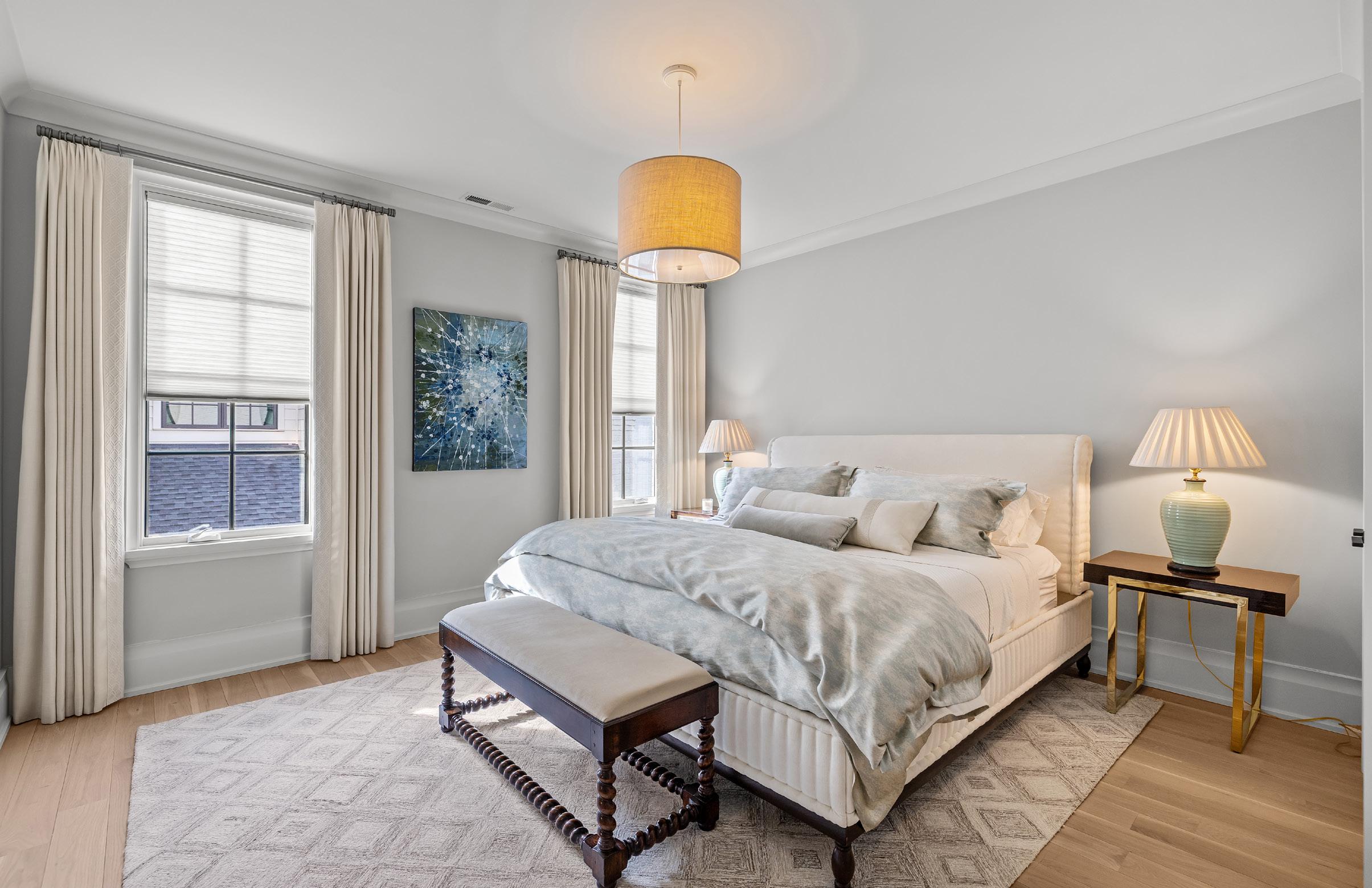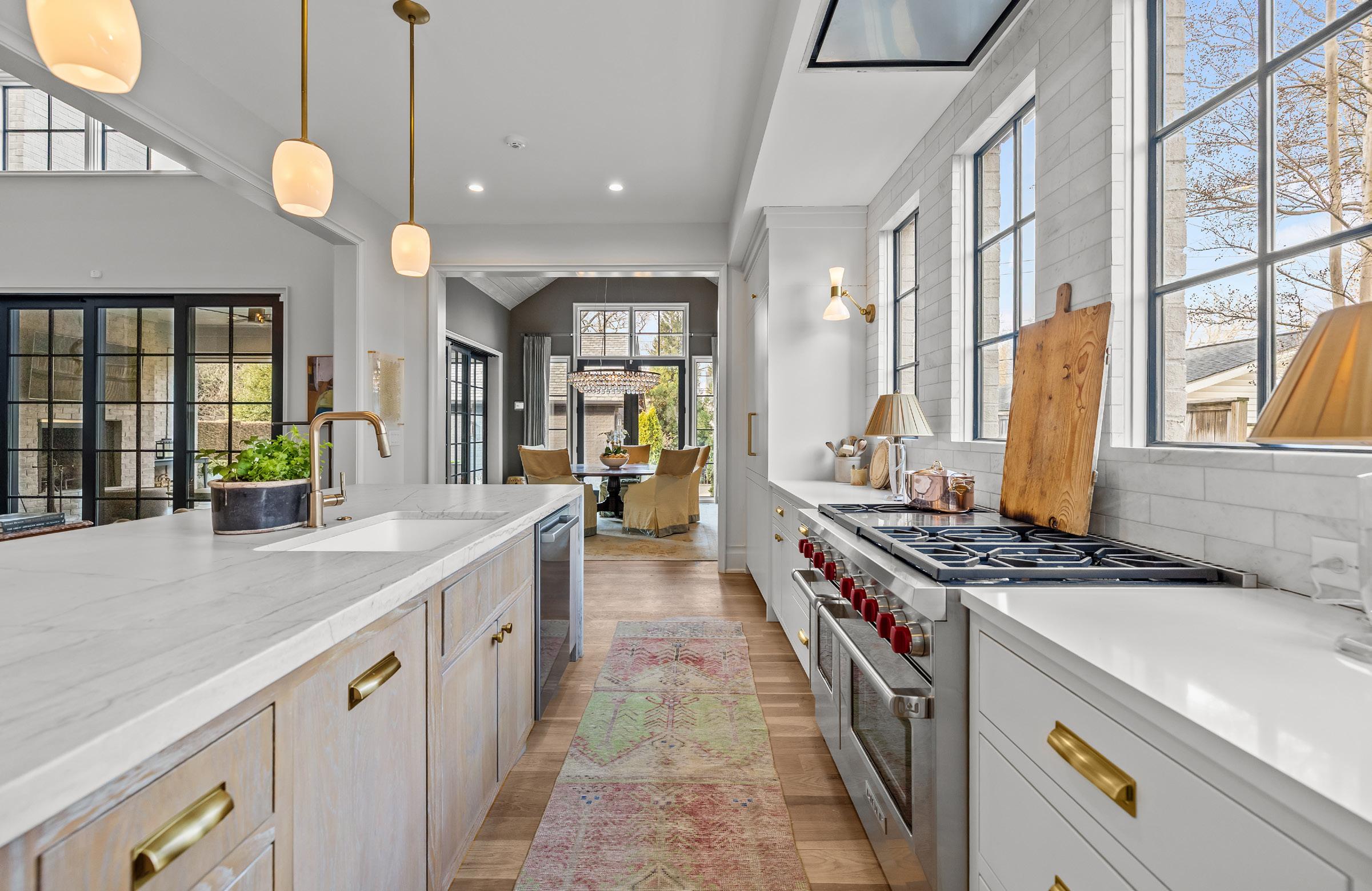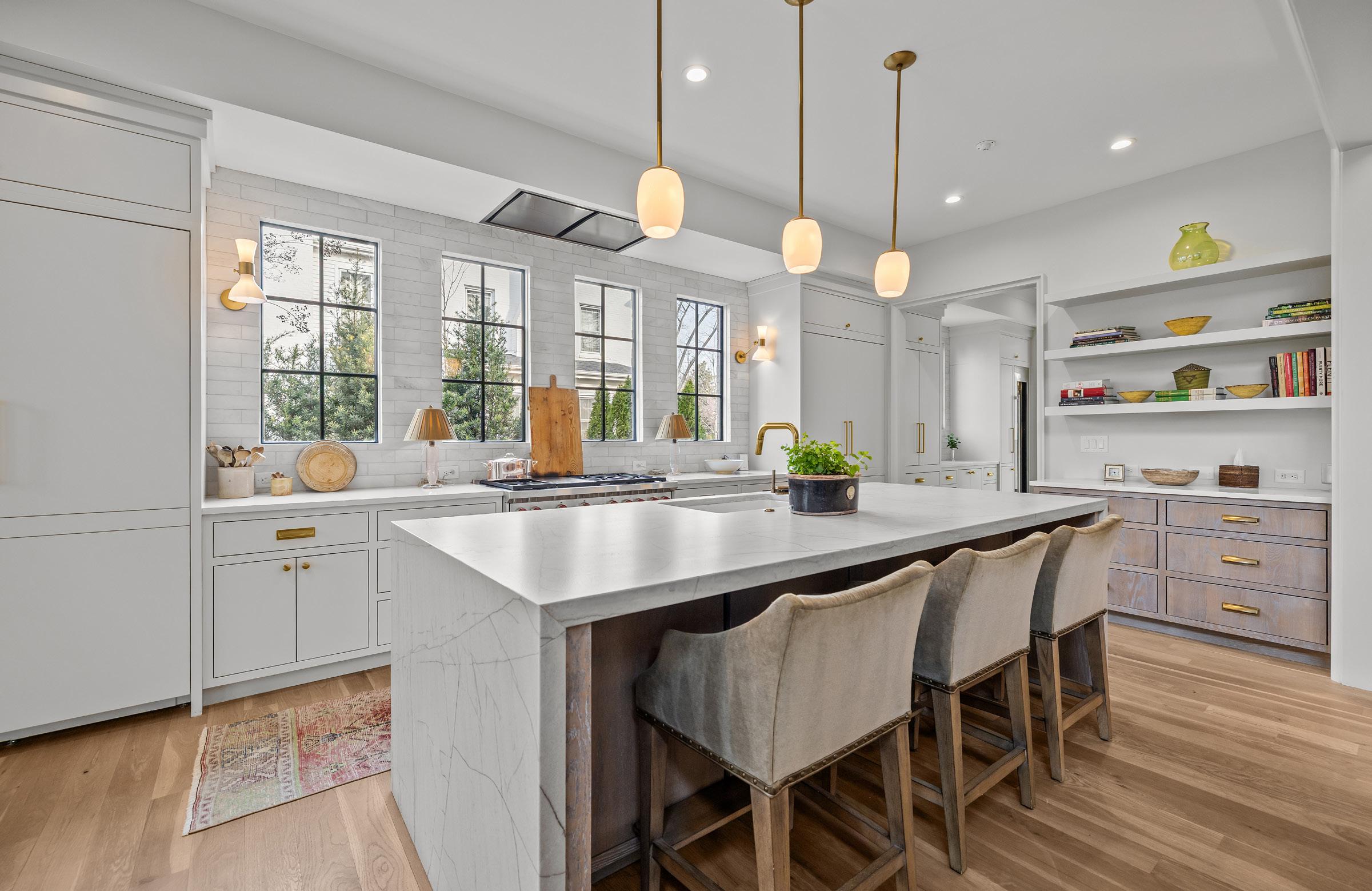 An EXQUISITE EASTOVER custom built residence blending timeless architecture with modern luxury. Curb appeal features tumbled brick, metal windows, bluestone accents, curated landscaping, and a dramatic steel-and-glass pivot entry door. Inside, light-filled interiors showcase white oak hardwood floors, custom trim, whitewashed shiplap, exposed beams, and soaring ceilings. The Great Room boasts 15’ ceilings, transom windows, a custom fireplace with reclaimed white oak mantel, and a concealed Hall library with built-in shelving. Sliding glass walls in the Great and Dining Rooms open to a covered terrace with bluestone flooring, ceiling fan, and masonry fireplace, ideal for indoor-outdoor entertaining. The open chef’s kitchen features a gray-washed white oak waterfall island with Lavezzi leathered quartzite countertops, Silestone perimeter counters, marble backsplash, and custom cabinetry. Premium appliances include Sub-Zero refrigeration, integrated dual-zone wine tower, Wolf 48” dual-fuel range, and ASKO dishwasher, plus a dedicated beverage, prep and pantry area. The main-level primary suite offers vaulted ceilings, French doors to the landscaped yard, access to a private retreat, and a spa-inspired bath with freestanding tub, frameless glass shower, marble countertops, and walk-in closets. Upper levels provide four bedrooms with two ensuite, full laundry, den/media space, study/office, and a generous third-floor bonus room for exercise or a private study with walk-in attic storage. The upstairs left suite would function seamlessly as a secondary primary retreat. Additional highlights include two laundry rooms, energy-efficient construction, and a detached two-car garage. Convenient to shops and restaurants in the Myers Park and Eastover area with an easy commute to Uptown.