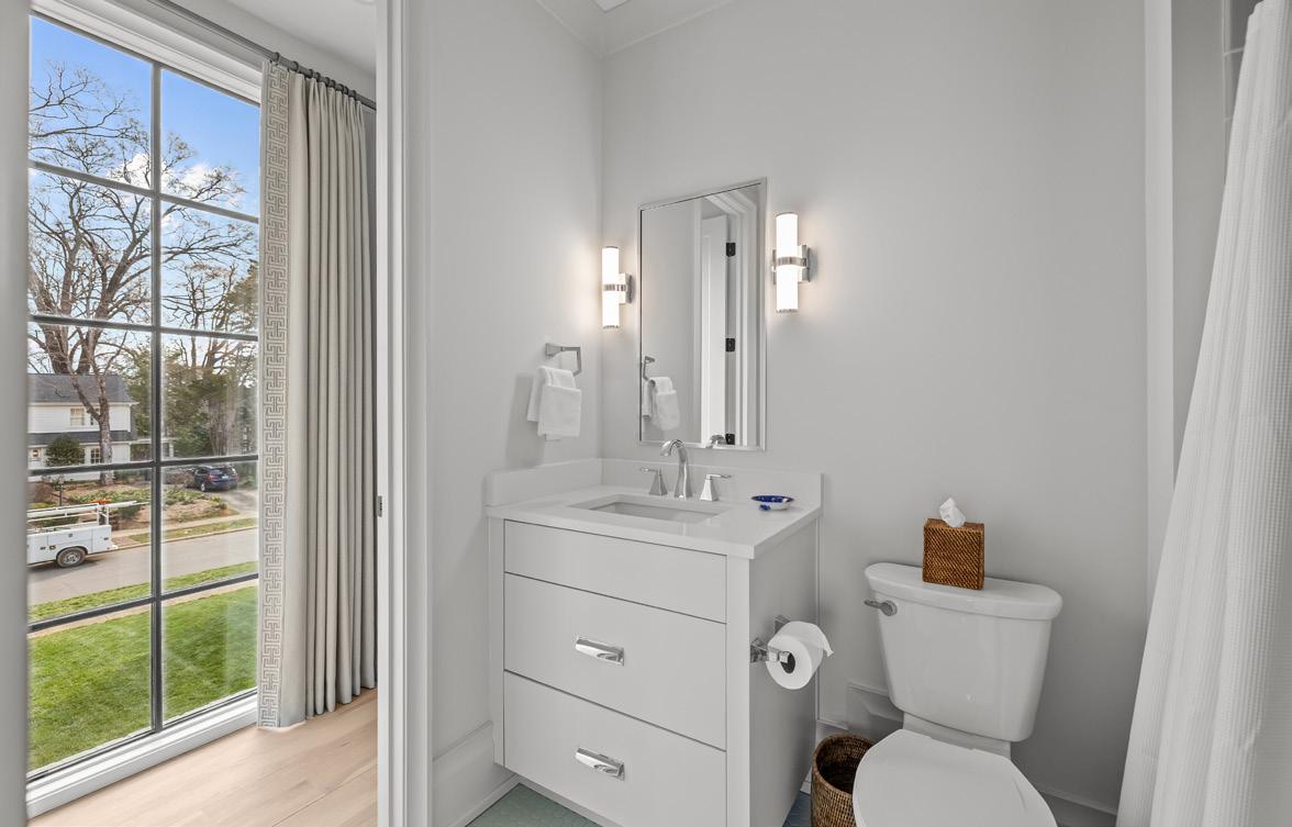Public Rmrks: An EXQUISITE EASTOVER custom built residence blending timeless architecture with modern luxury. Curb appeal features tumbled brick, metal windows, bluestone accents, curated landscaping, and a dramatic steeland-glass pivot entry door. Inside, light-filled interiors showcase white oak hardwood floors, custom trim, white-washed shiplap, exposed beams, and soaring ceilings. The Great Room boasts 15’ ceilings, transom windows, a custom fireplace with reclaimed white oak mantel, and a concealed Hall library with built-in shelving. Sliding glass walls in the Great and Dining Rooms open to a covered terrace with bluestone flooring, ceiling fan, and masonry fireplace, perfect for indoor-outdoor entertaining. The open chef’s kitchen features a gray-washed white oak waterfall island with Lavezzi leathered quartzite countertops, Silestone perimeter counters, marble backsplash, and custom cabinetry. Premium appliances include Sub-Zero refrigeration, integrated dual-zone wine tower, Wolf 48” dual-fuel range, and ASKO dishwasher, plus a dedicated beverage, prep and pantry area. The main-level primary suite offers vaulted ceilings, French doors to the landscaped yard, access to a private retreat, and a spa-inspired bath with freestanding tub, frameless glass shower, marble countertops, and walk-in closets. Upper levels provide four bedrooms with two ensuite, full laundry, den/media space, study/office, and a generous third-floor bonus room for exercise or a private study with a wall of closets for storage and walk-in attic storage. The upstairs left suite would function seamlessly as a secondary primary retreat. Additional highlights include two laundry rooms, energy-efficient construction, and a detached two-car garage. Convenient to shops and restaurants in the Myers Park and Eastover area with an easy commute to Uptown. BROKER OPEN FRIDAY 1-3PM.