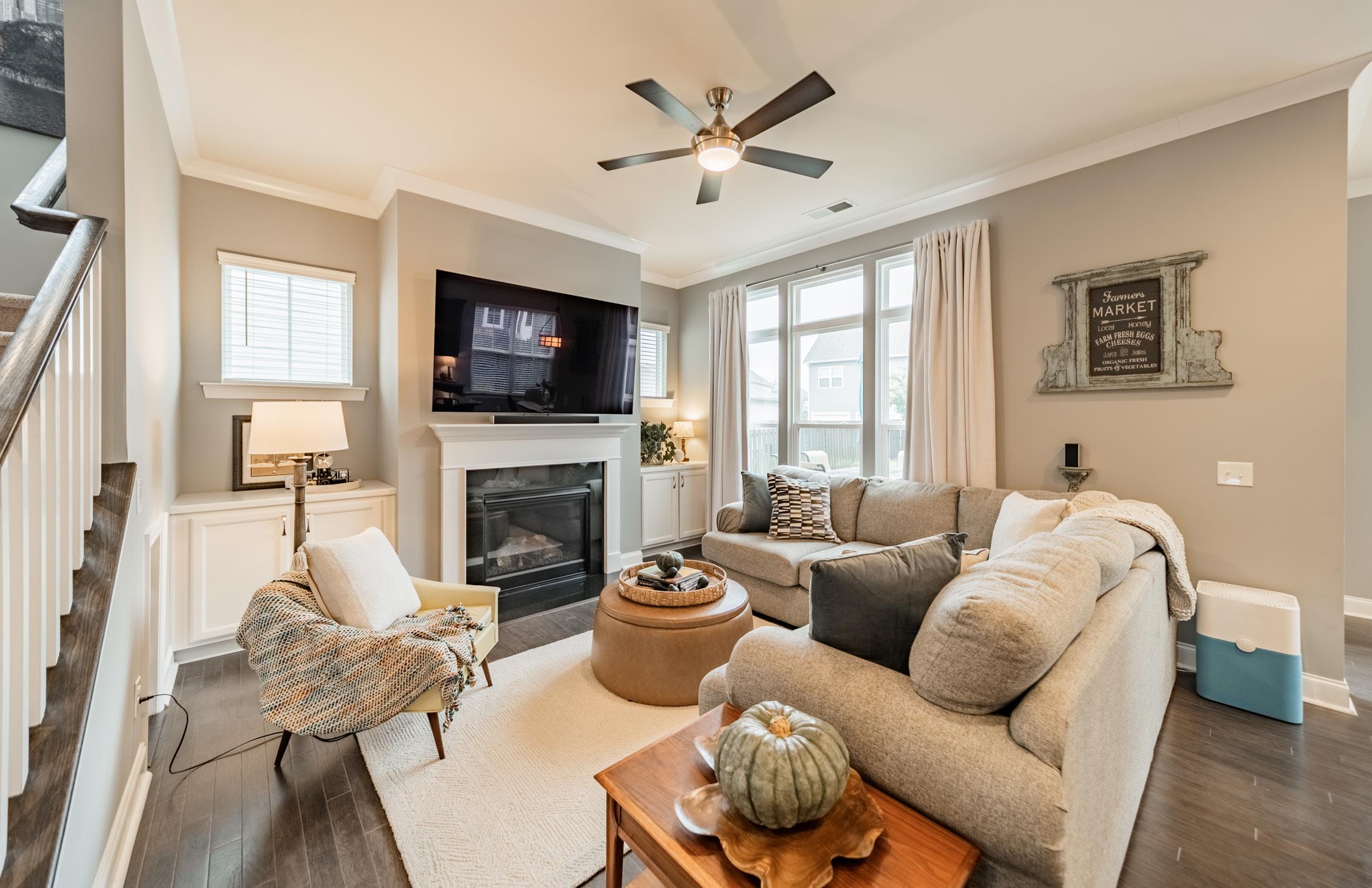 Public Rmrks: This inviting home in the highly sought-after McCullough neighborhood greets you with a spacious front porch and timeless curb appeal. Inside, the open floor plan features wood flooring, 10’ ceilings on the main level, and 9’ ceilings upstairs. A gracious foyer leads to the dining room and a main level guest suite for added convenience. The light-filled kitchen offers an island, gas cooktop, stainless steel appliances, a walk-in pantry, and a breakfast room. It opens into the great room with a fireplace and built-ins—an ideal space for everyday living and entertaining. A drop zone at the back door completes the main level. Upstairs, the luxurious primary suite features dual vanities, a soaking tub, separate shower, and a generous walk-in closet. Two additional bedrooms, a full hall bath, and a laundry room complete the second floor. Outdoors, the fenced backyard provides privacy for relaxing on the custom patio and lawn, while the HOA includes front yard maintenance for truly easy living. The McCullough community has it all—two pools, playgrounds,