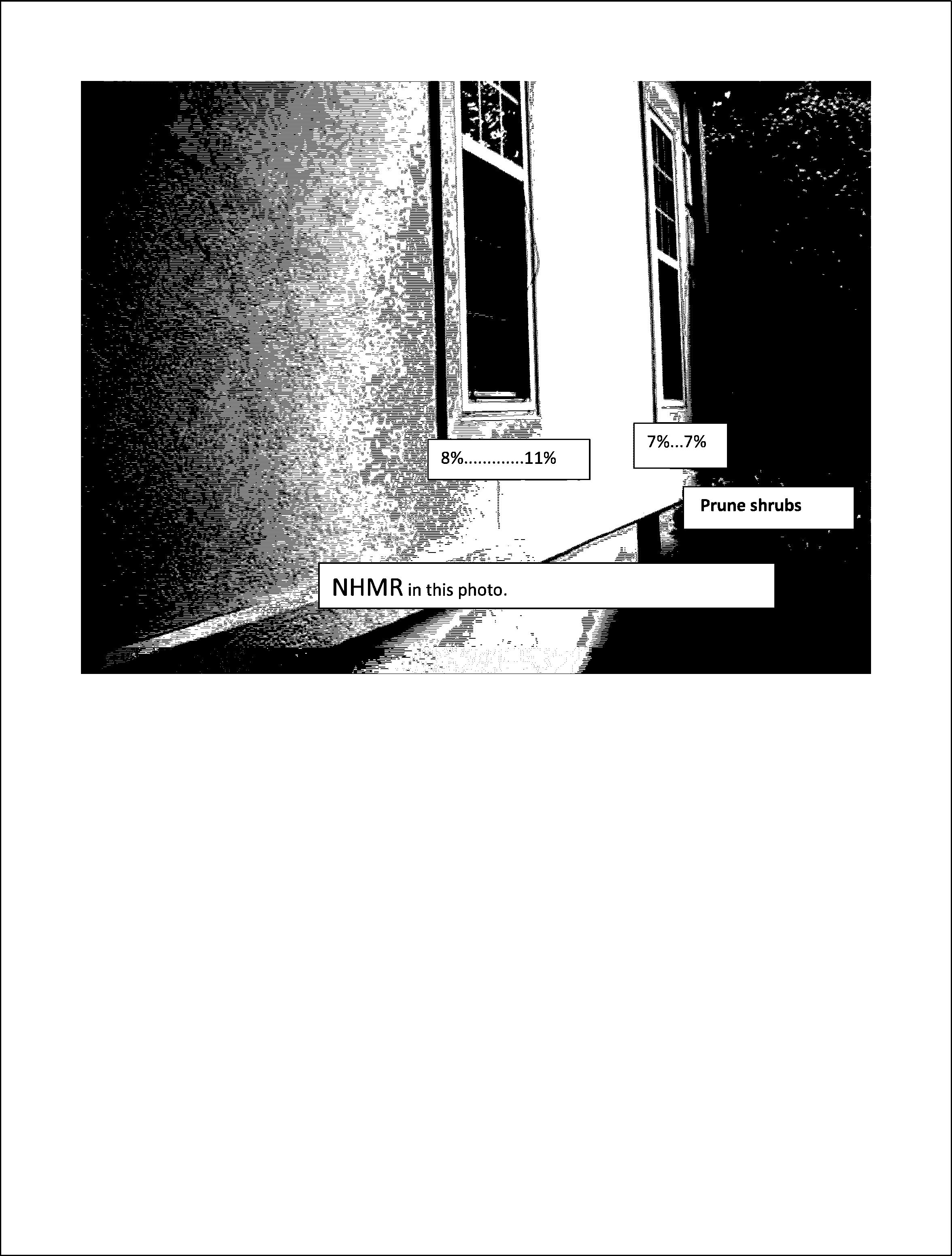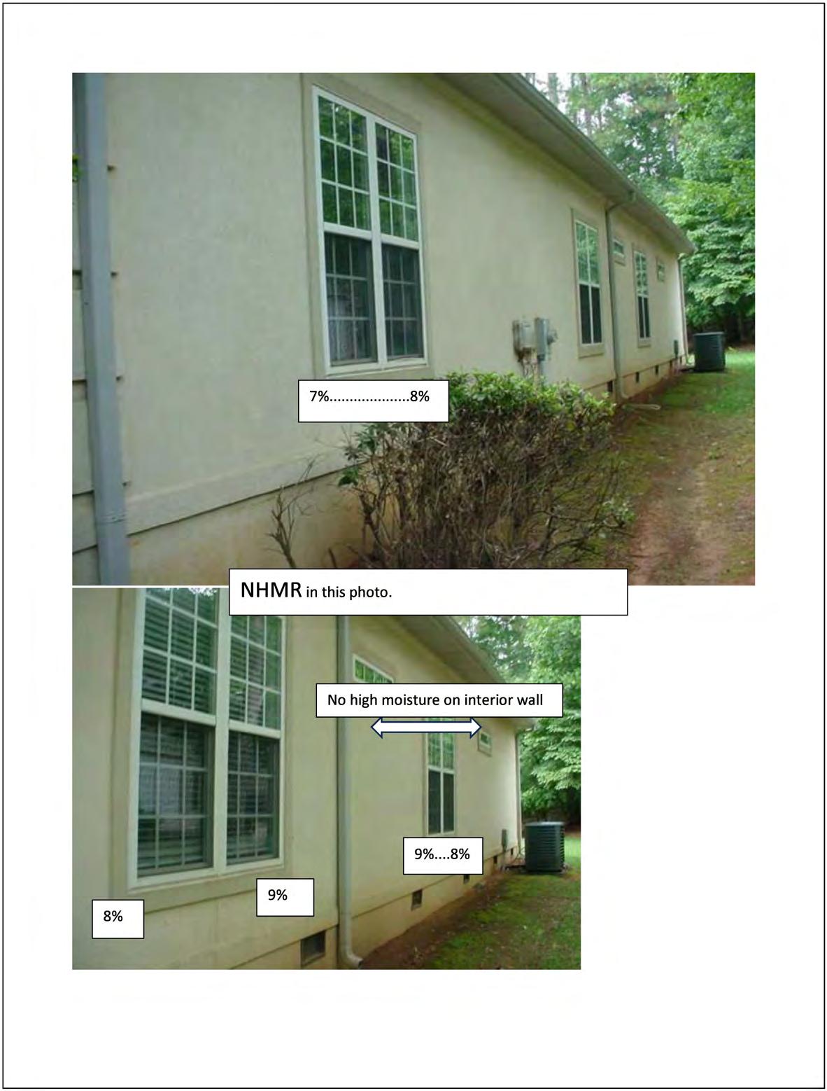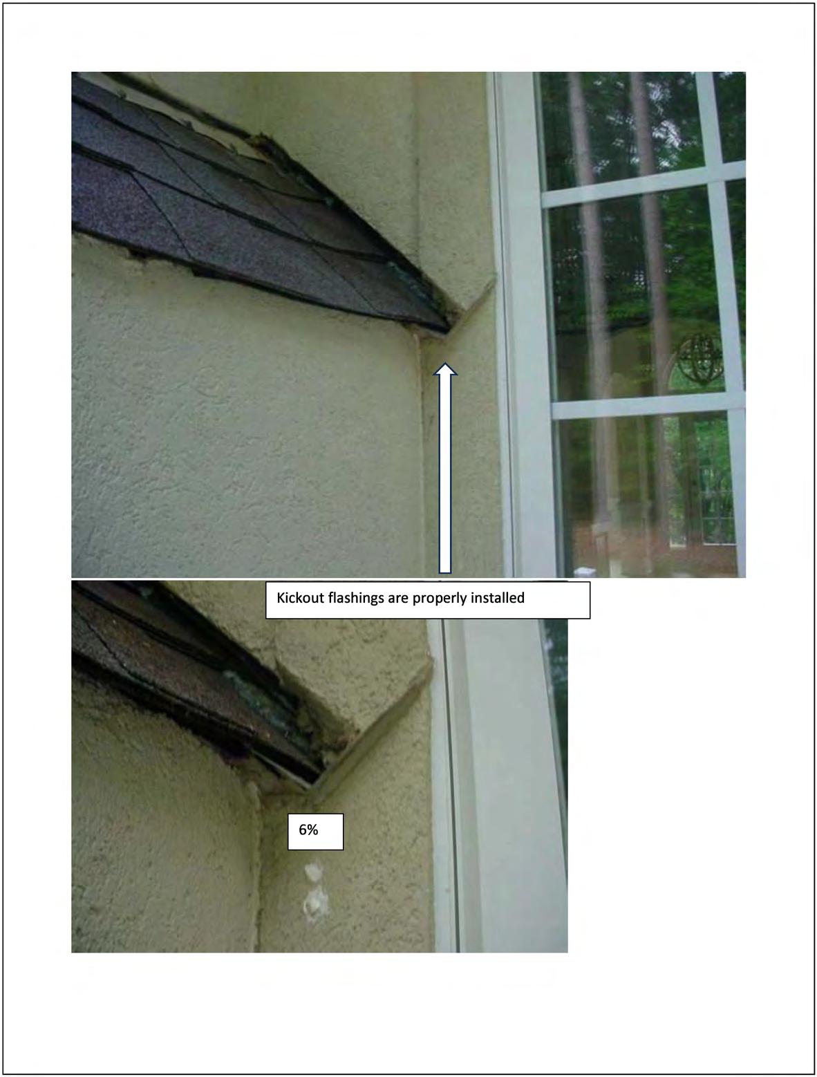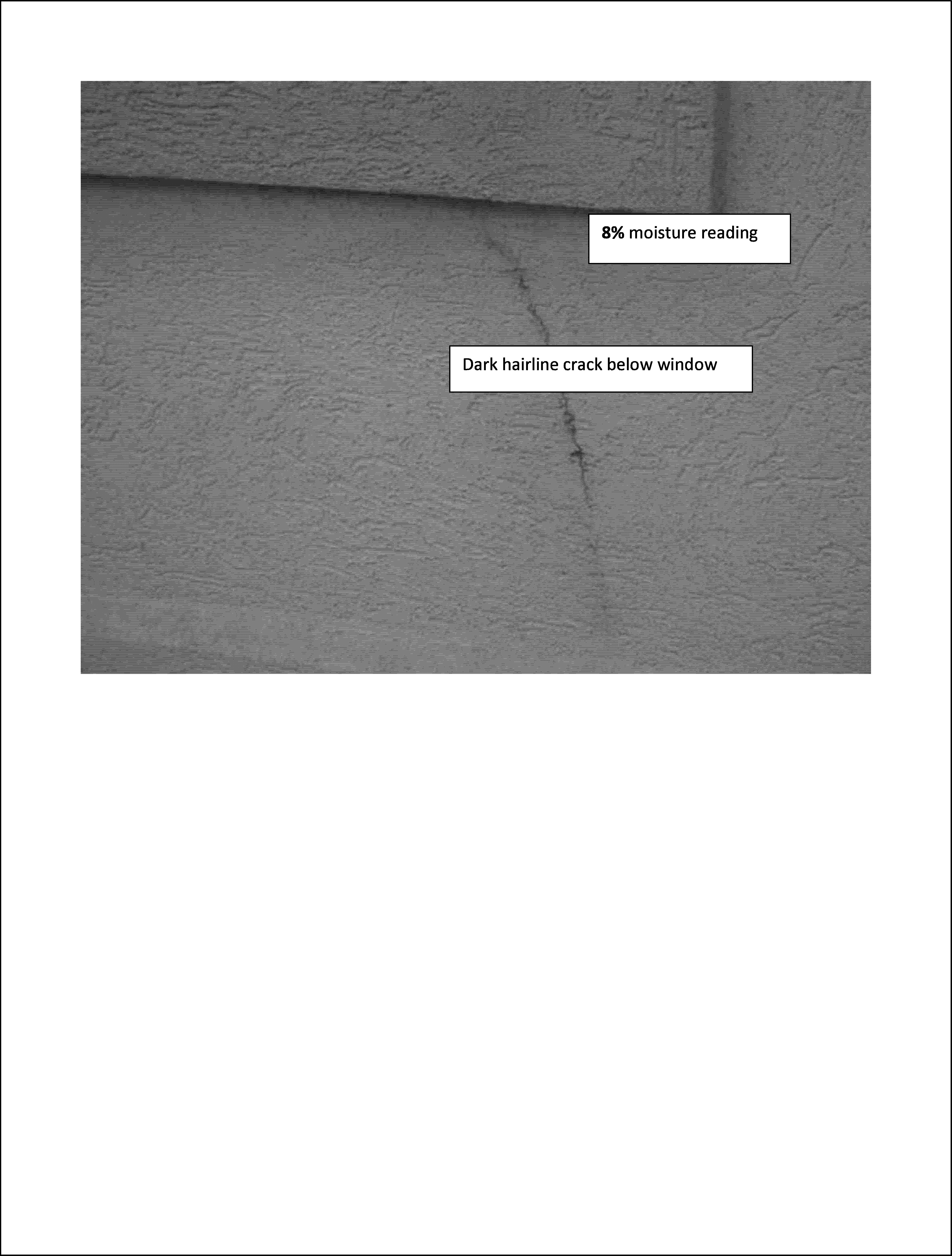 The inspection hasdeterminedthatdeficienciesexistin the stuccoinstallationandmoisturereadings arelessthan 20%. Thislevelof moisture indicates alowpotential forstructuraldamage. Repairstocorrect theinstallation deficiencies arenecessary.