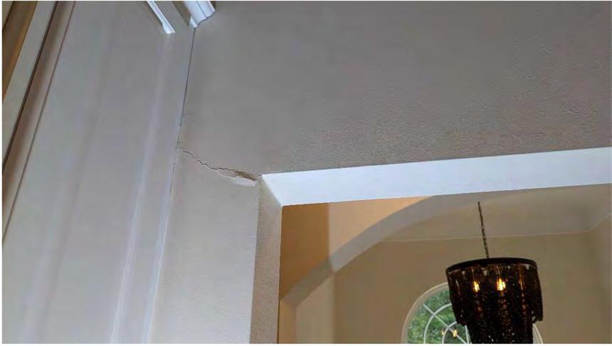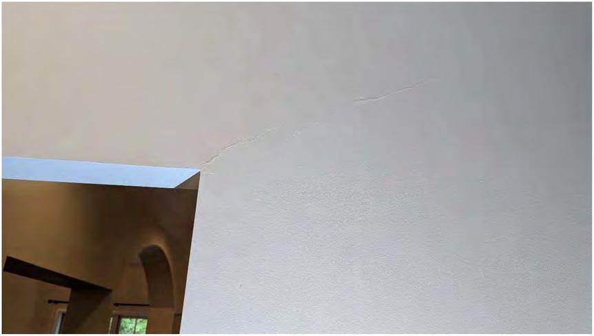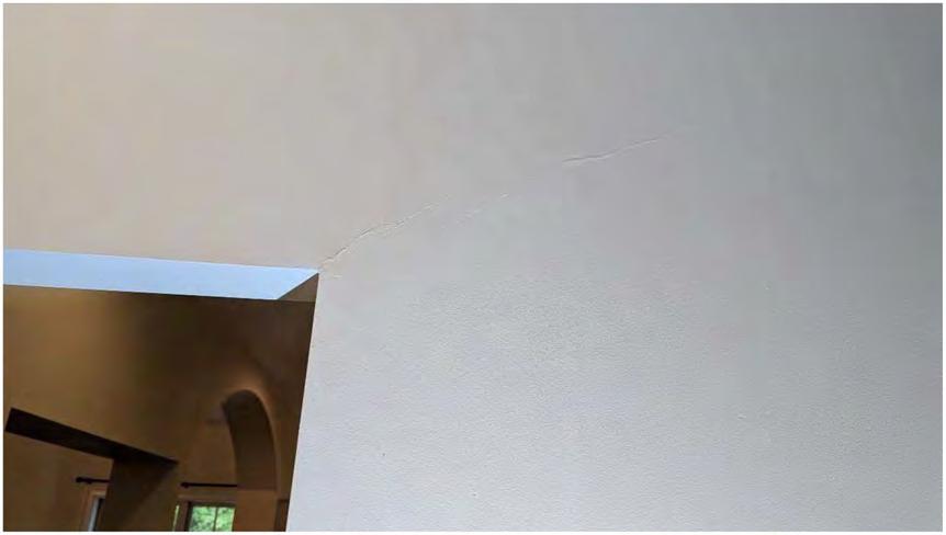 The minor cracks in the wall/ceiling finishes are likely due to minor settlement of the house and/or curing ofmaterials, and/or theexpansionandcontractionof the house materials based on the season and weather conditions. Cracks are typical of houses of similar age and construction. Cracks should be repaired cosmetically and monitored for future movement. No further repair is recommended at this time.