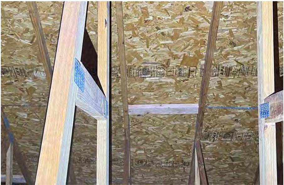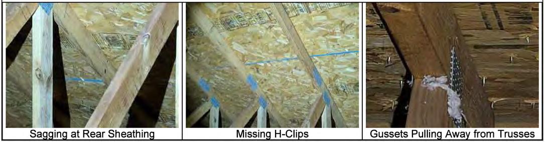 Missing or damaged H-clips between decking was observed in various locations, particularlyatthe rearroofarea. It is recommended that 2xflatblockingbeinstalled wheremissingor damaged H-clipsare observed.
