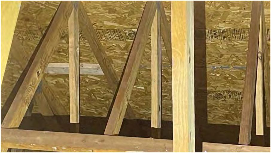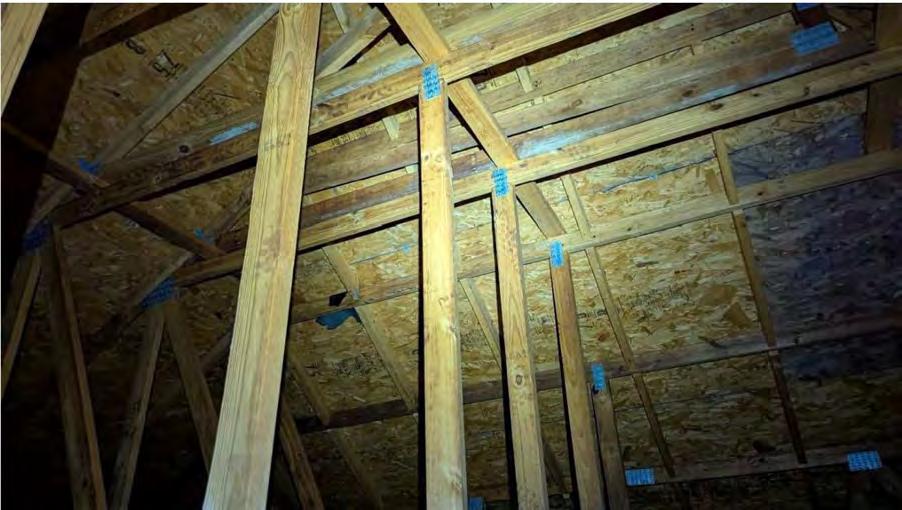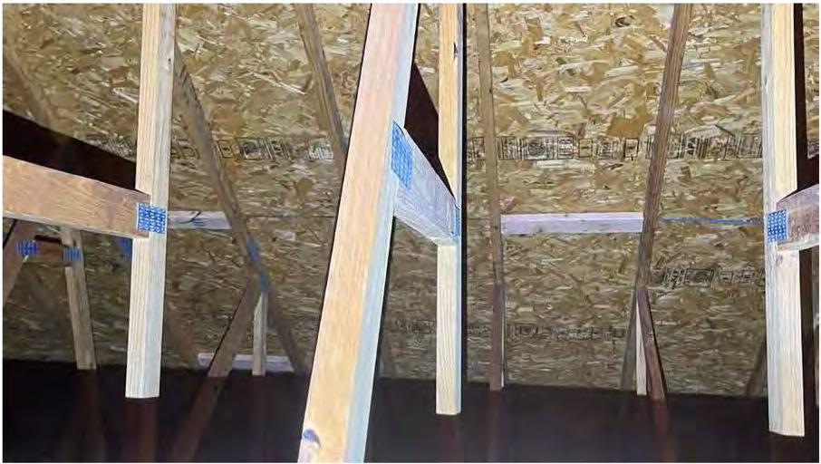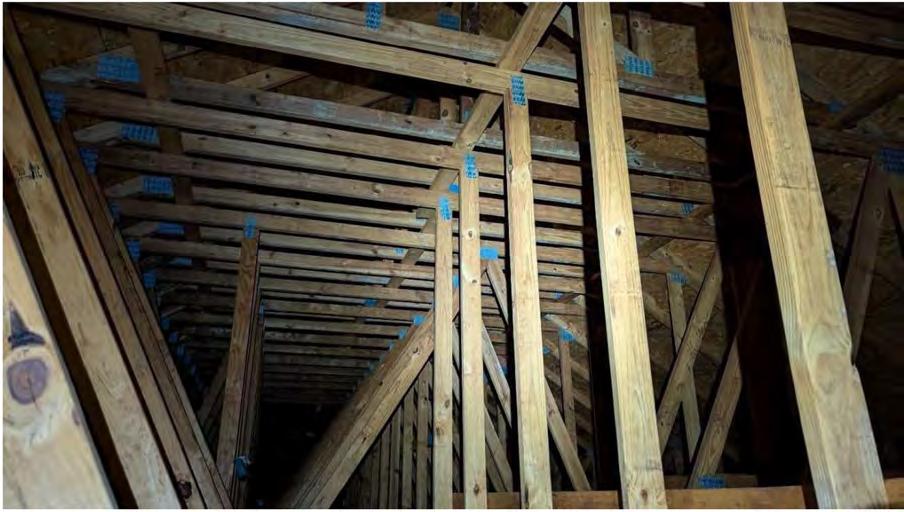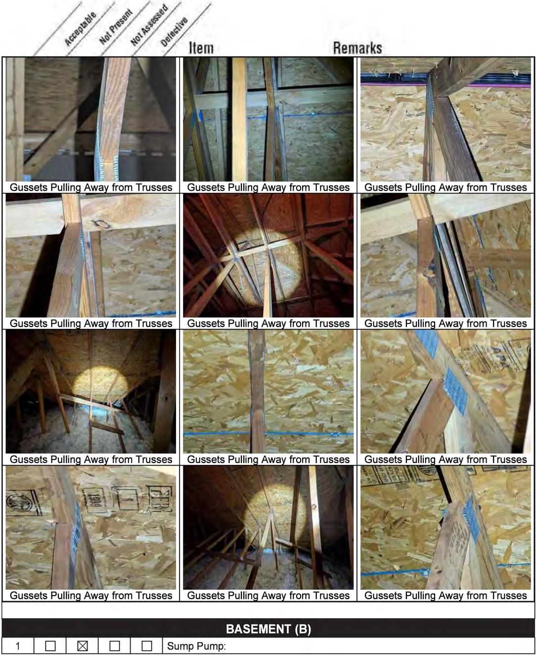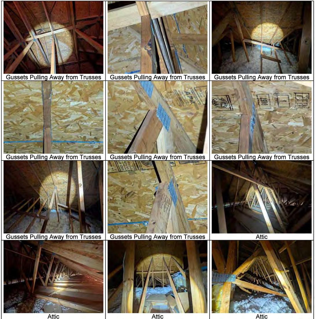 2.2.Item: The gusset plates, or truss plates, throughout the attic spacewere observed. They do not appear to be structurally distressed or deficient beyond current accepted construction and engineering tolerances.