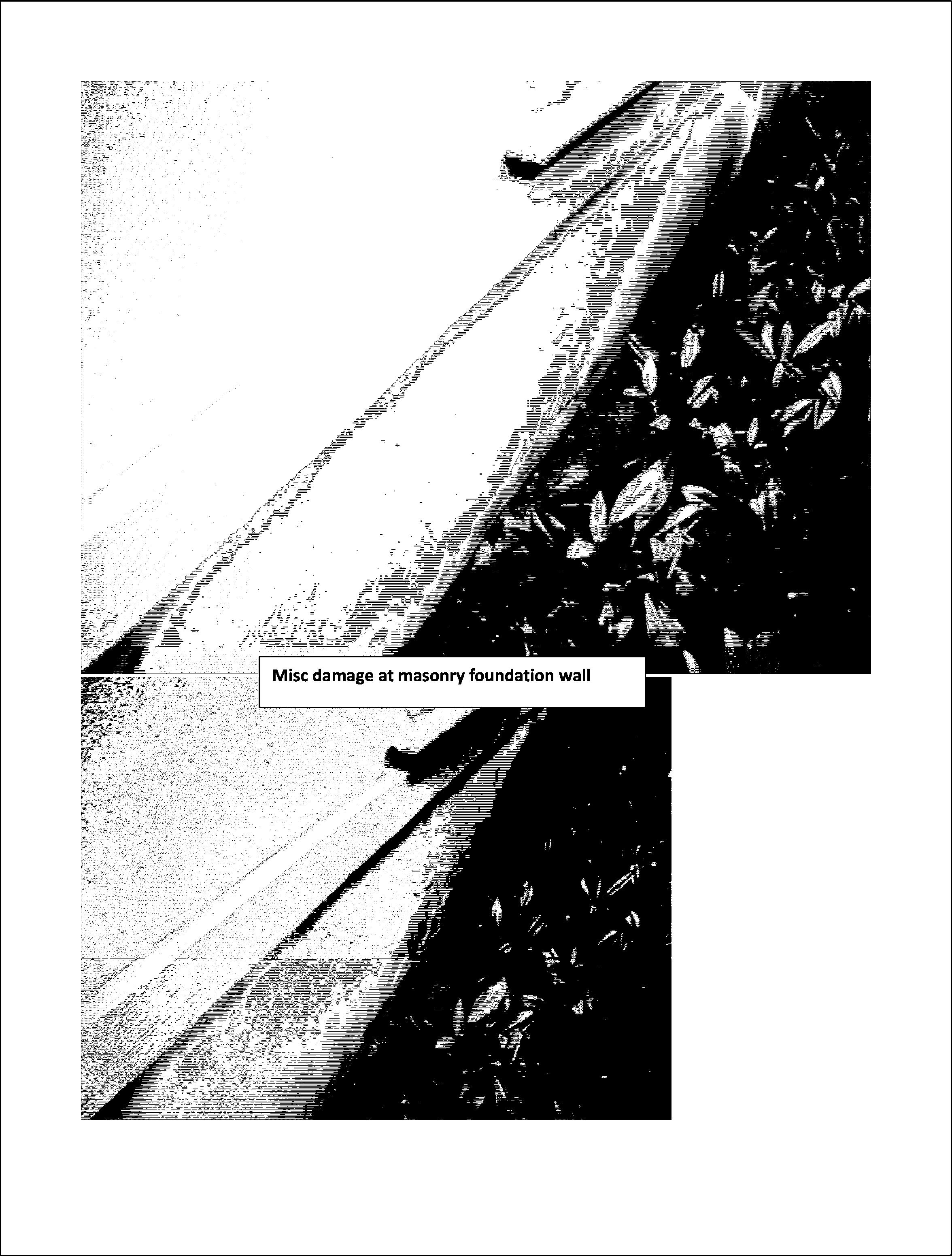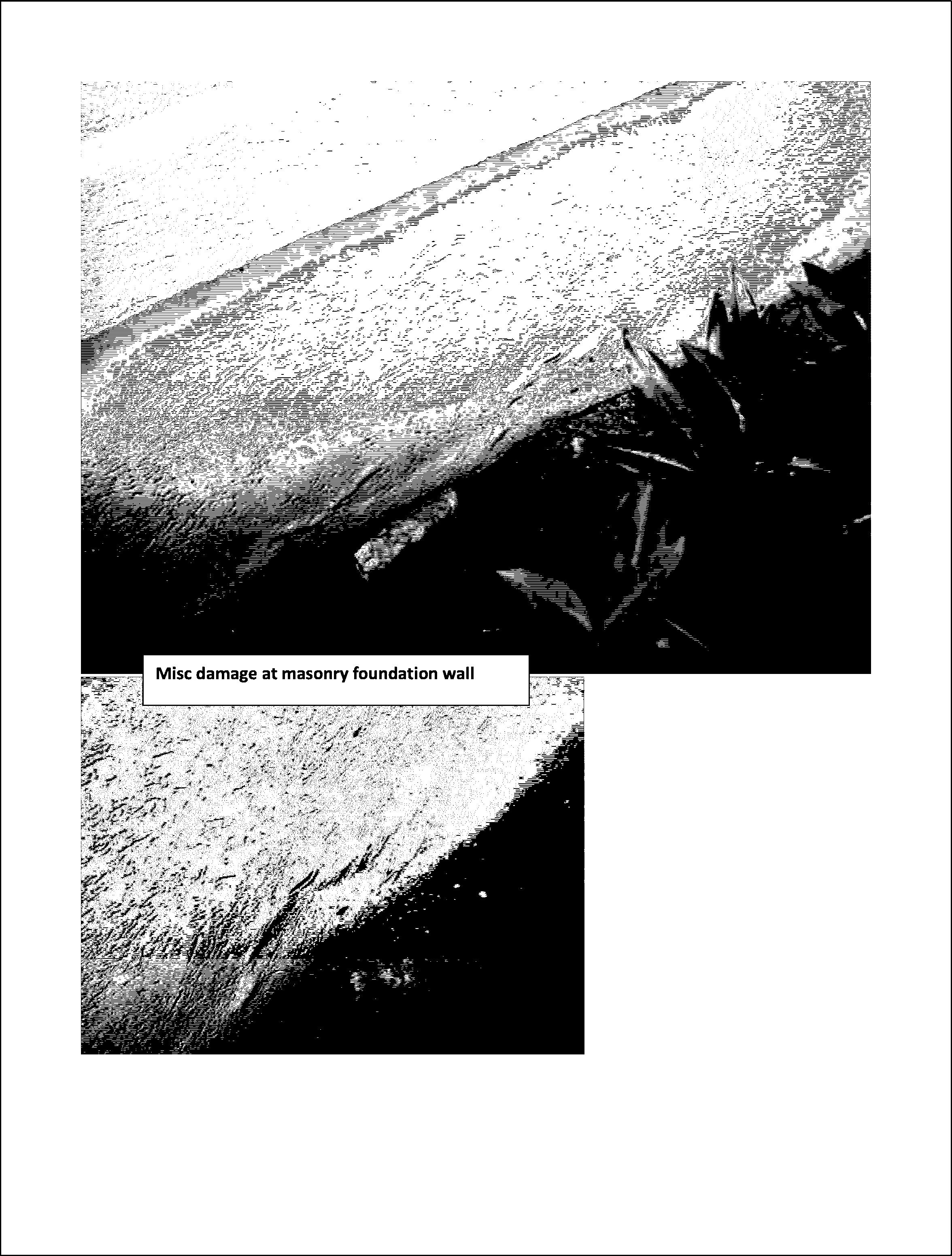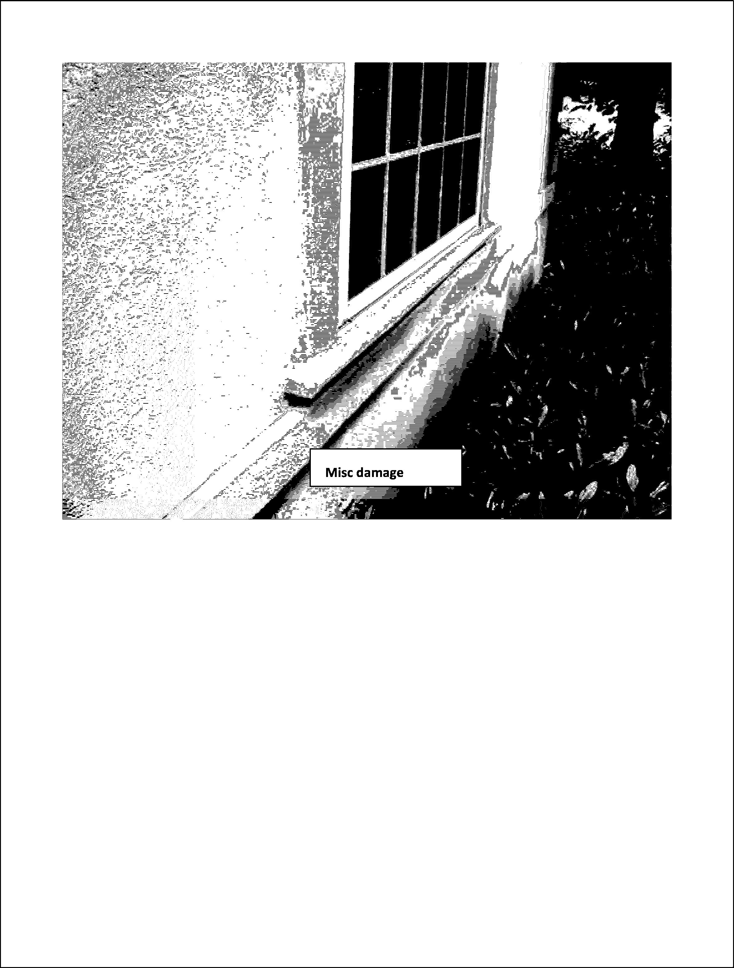 Arethereanyareaswithcrackingor surface Damagedaccentband, damage atmasonry foundation wall damage? and a hairlinecrack below window.
