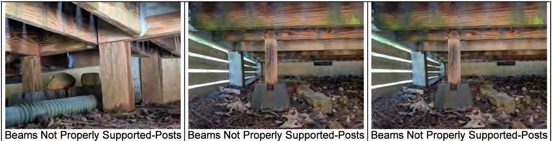 3.6.4. It is recommended that full bearing be provided for all three 2x10members at this pier location. A solid bearing surface, such as a wider masonry cap blockor the existing block relocated, or a properly sized steel bearing plate, should be installed so that the entire width of the girder is fully supported on the pier.