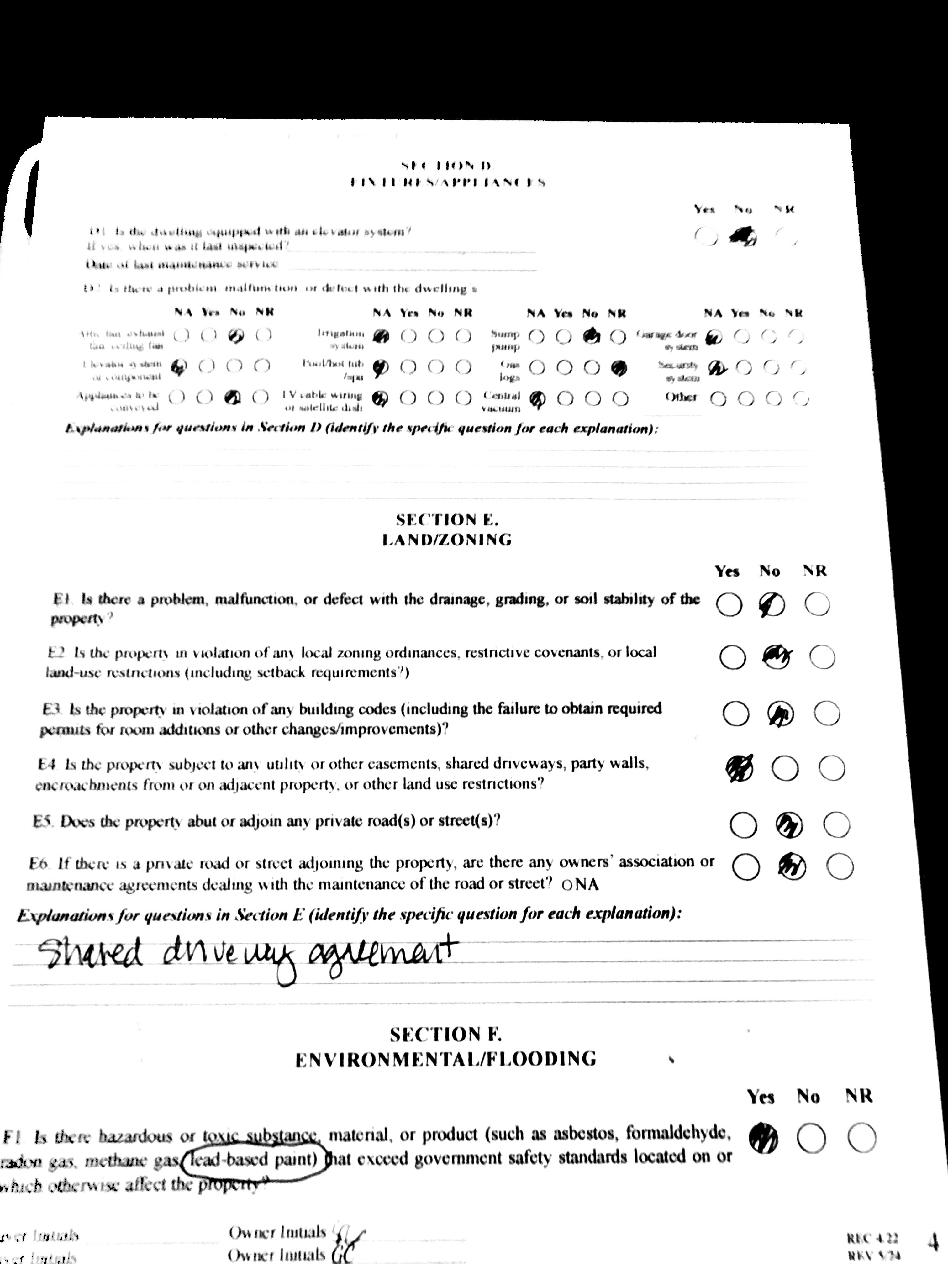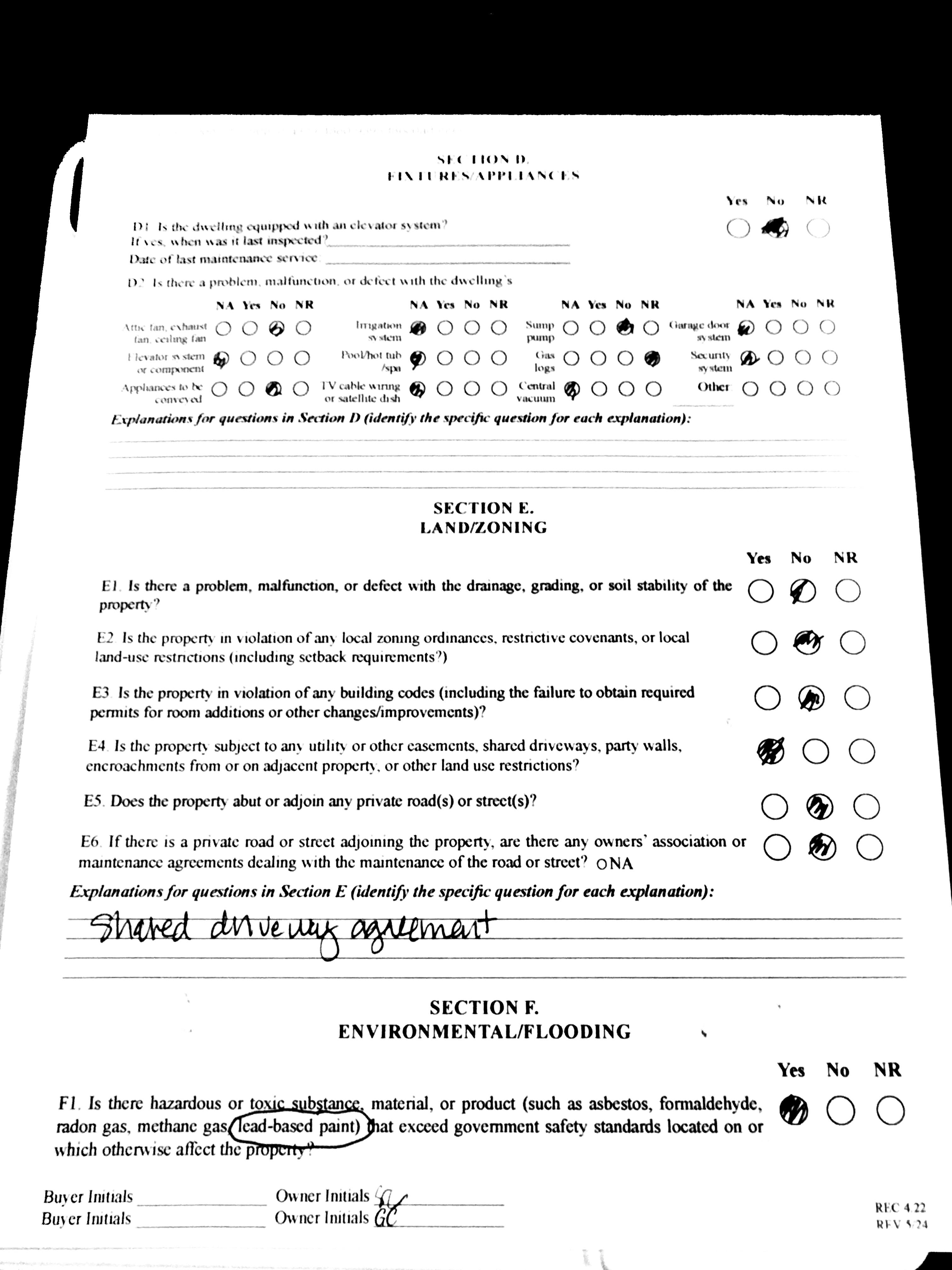Seller has no knowledge of lead-based paint and/or lead-based paint hazards in the housing.