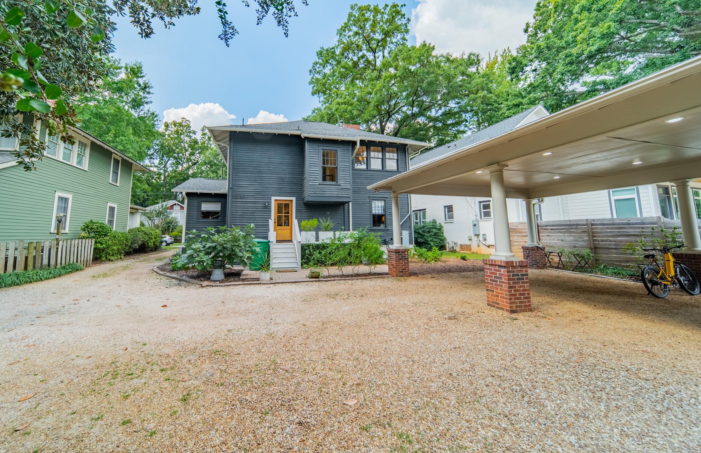 Welcome to this beautiful 1926 gem in the heart of Elizabeth, one of Charlotte’s oldest and beloved neighborhoods. Nestled just minutes from Plaza Midwood, the new Commonwealth development, and 7th Street’s vibrant restaurants and shops, this home combines timeless character with modern comfort. Step inside and be greeted by light-filled living spaces showcasing original charm and thoughtful updates. Elegant hardwood floors and stylish lighting fixtures create a warm, inviting atmosphere. The living areas flow seamlessly, featuring two distinct gathering rooms, anchored by a fireplace and surrounded by custom built-ins and designer finishes. The bedroom downstairs is currently being used as an intimate den. The chef’s kitchen boasts custom cabinetry painted in a rich navy, open shelving, a professional-grade range, and plenty of prep space. The adjacent dining and entertaining areas make this home perfect for both intimate evenings and lively gatherings. Upstairs, you’ll find three spacious bedrooms and two full baths, offering comfort and flexibility for family and guests alike. Outside, enjoy a generous, nicely landscaped lot with mature trees and manicured beds. The detached carport includes a conditioned office space, perfect for working from home, a studio, or a creative retreat. The backyard patio provides a private oasis with space for outdoor dining, lounging, and entertaining. This rare Elizabeth beauty is the perfect blend of classic architecture, curated design, and prime location—just waiting for its next chapter.