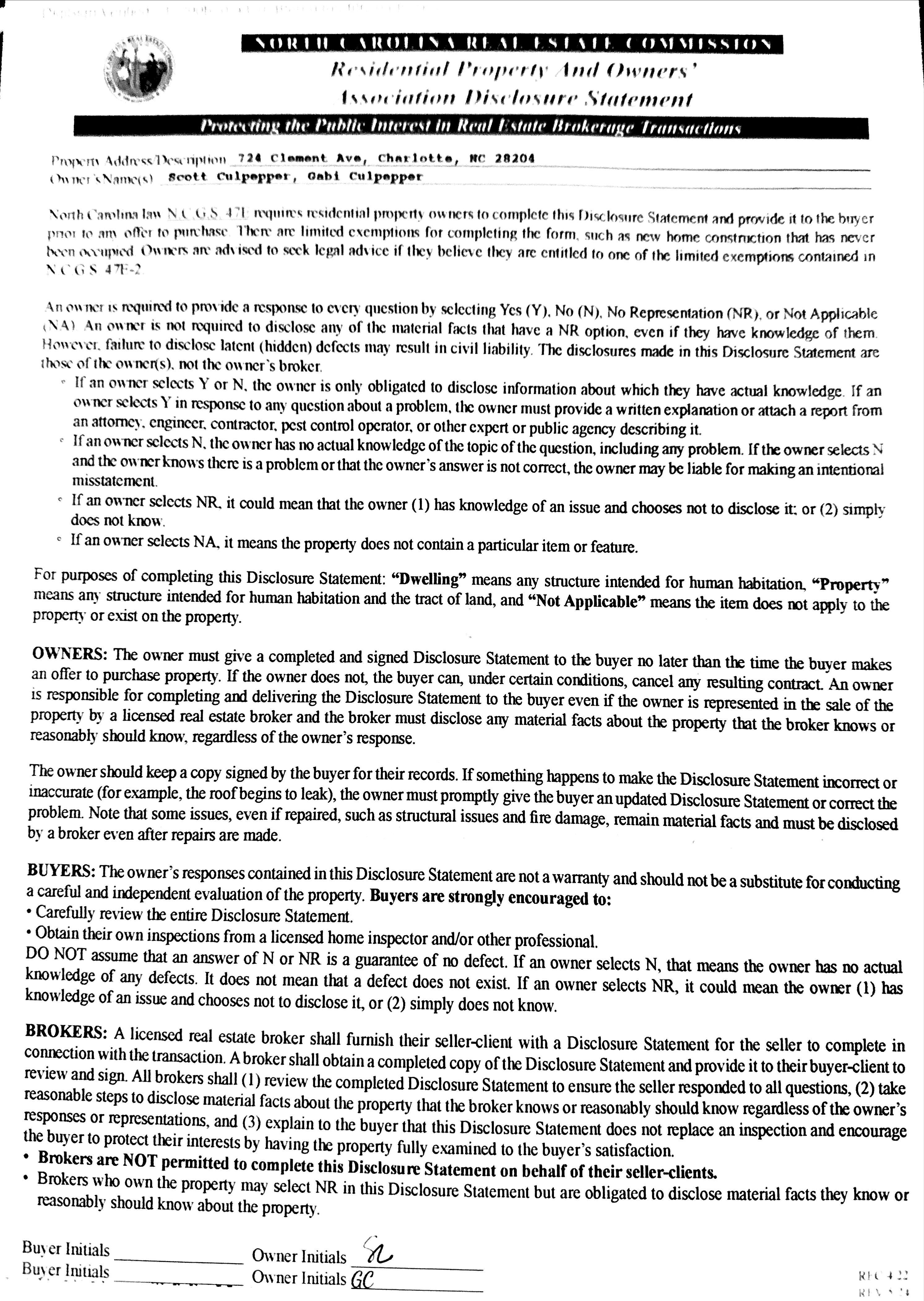 DO NOT UPLOAD THIS FORM TO THE MLS OR ATTACH IT TO A PURCHASE CONTRACT. NC REALTORS® MAKES NO REPRESENTATION AS TO THE LEGAL VALIDITY OR ADEQUACY OF THIS FORM IN ANY TRANSACTION.