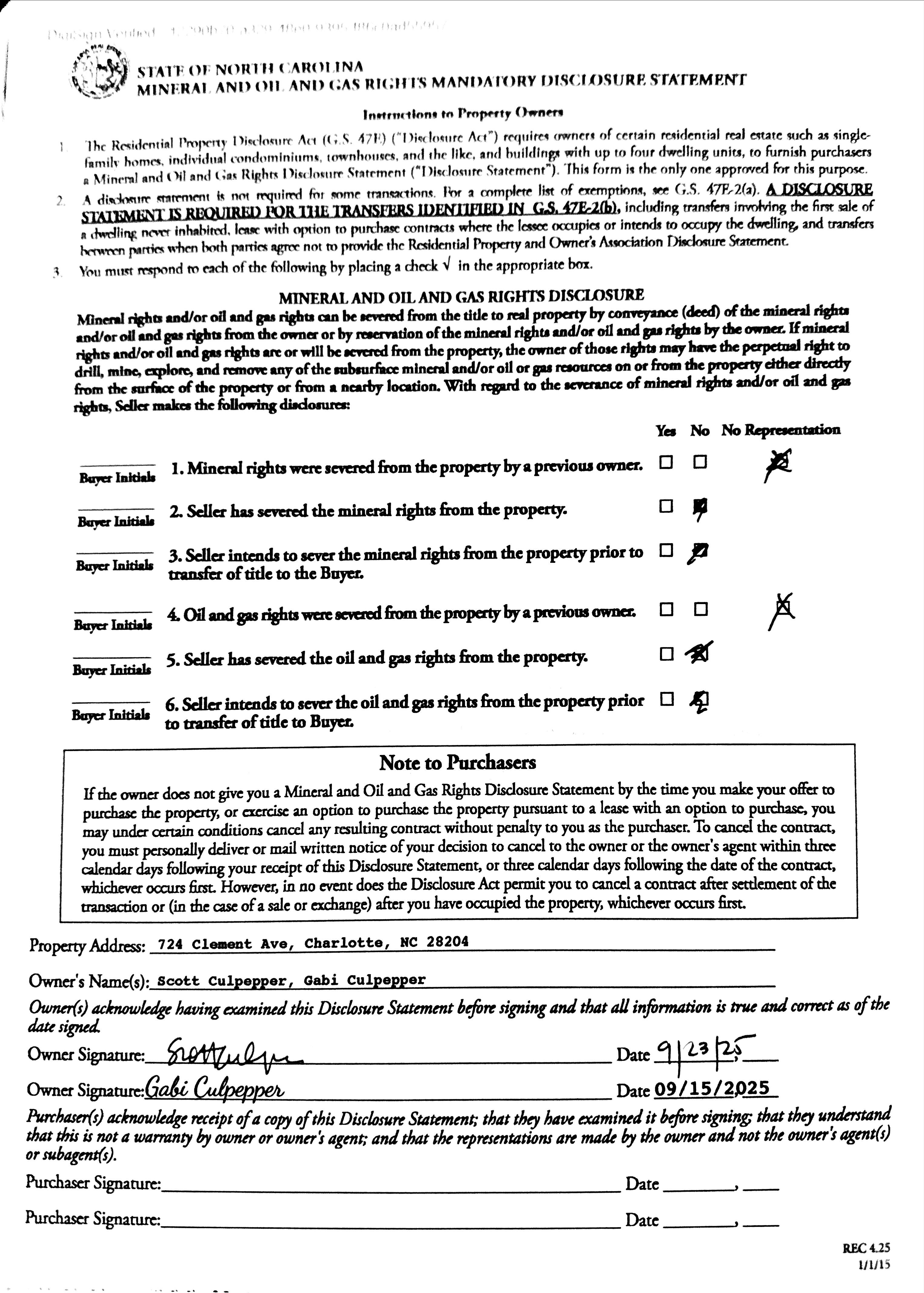 NC REALTORS® AND THE NORTH CAROLINA BAR ASSOCIATION MAKE NO REPRESENTATION AS TO THE LEGAL VALIDITY OR ADEQUACY OF ANY PROVISION OF THIS FORM IN ANY SPECIFIC TRANSACTION. IF YOU DO NOT UNDERSTAND THIS FORM OR FEEL THAT IT DOES NOT PROVIDE FOR YOUR LEGAL NEEDS, YOU SHOULD CONSULT A NORTH CAROLINA REAL ESTATE ATTORNEY BEFORE YOU SIGN IT