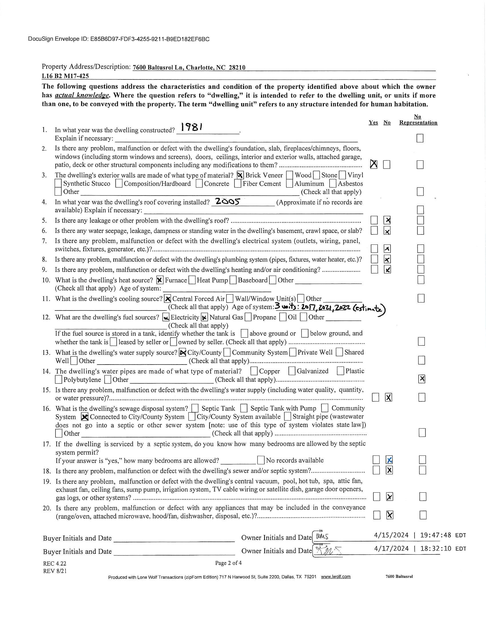 7600 Baltusrol Lane, Charlotte, North Carolina 28210 MLS#: 4131825 Category: Residential County: Mecklenburg Status: ACT City Tax Pd To: Charlotte Tax Val: $3,257,100 List Price: $3,395,000 Subdivision: Quail Hollow Complex: Zoning Spec: R12PUD Zoning: Parcel ID: 20921125 Deed Ref: 31171/140 Legal Desc: L16 B2 M17-425 Apprx Acres: 0.83 Apx Lot Dim: Lot Desc: On Golf Course General Information School Information Type: Single Family Elem: Beverly Woods Style: Traditional Middle: Carmel Levels Abv Grd: 2 Story High: South Mecklenburg Const Type: Site Built SubType: Building Information Level # Beds FB/HB HLA Non-HLA Beds: 5 Main: 1 1/1 2,850 Baths: 5/1 Upper: 4 4/ 2,561 Yr Built: 1981 Third: 0 New Const: No Lower: 0 Prop Compl: Bsmt: 0 Cons Status: 2LQt: 0 Builder: Model: Above Grade HLA: 5,411 Additional SqFt: Tot Primary HLA: 5,411 Garage SF: