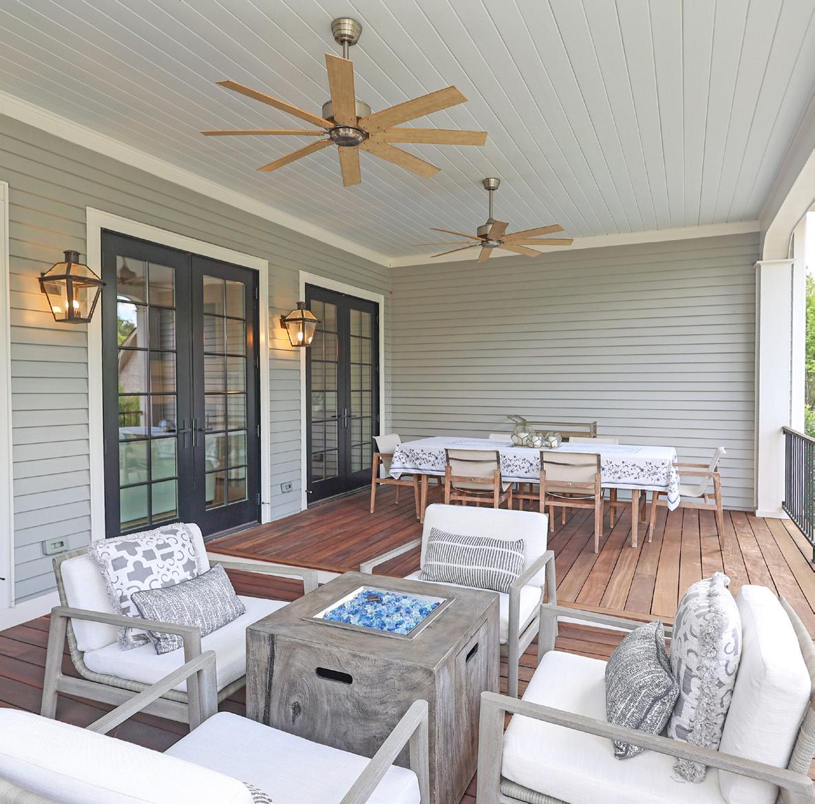 • Classic craftsman bungalow with beadboard, columns, and ceiling fans