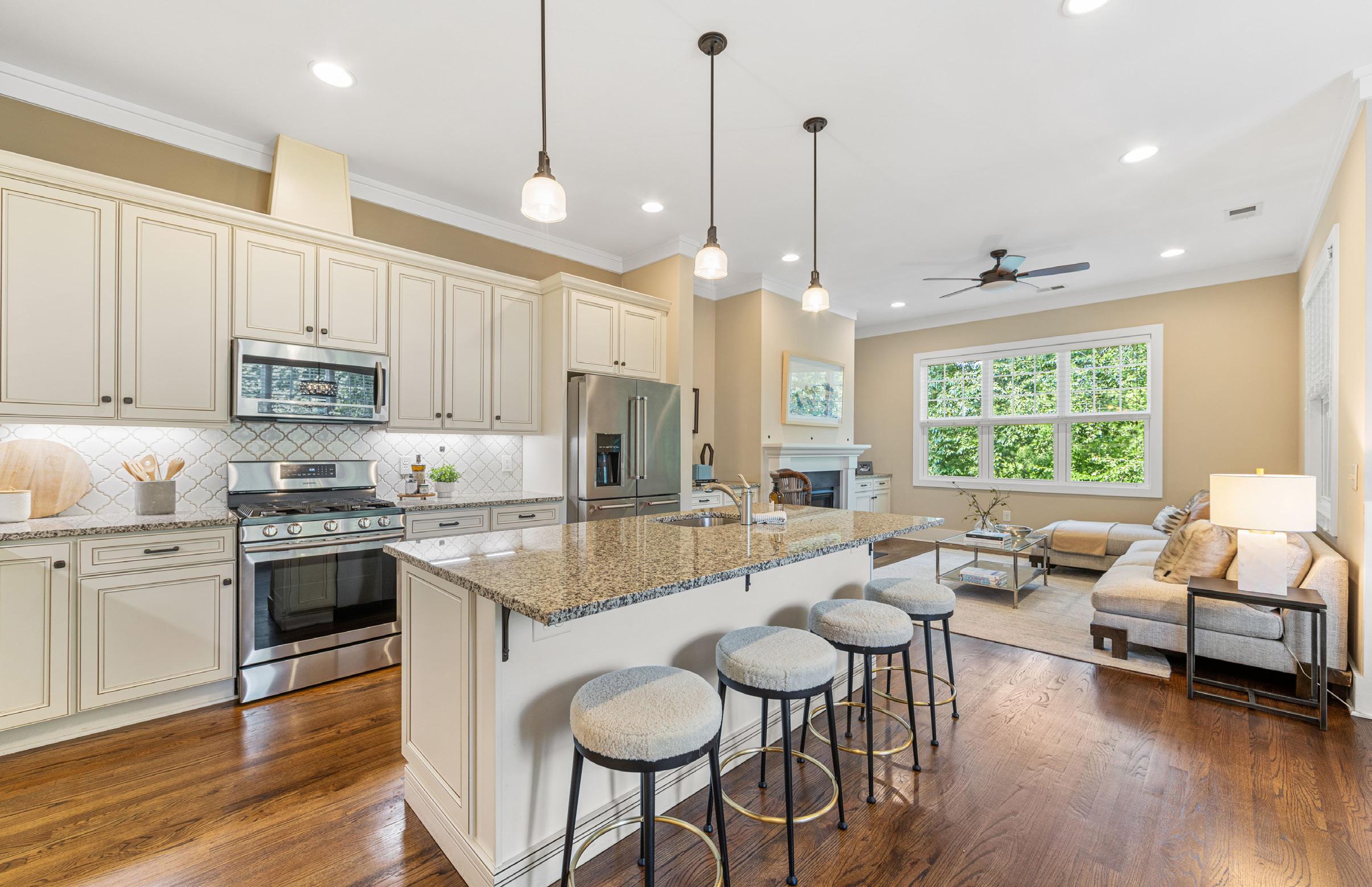 Public Rmrks: Welcome to this charming townhome in highly desirable Selwyn Park, just steps from the Greenway; an unbeatable location near Park Road Shopping Center, Montford, and Myers Park. Offering a perfect blend of modern style, comfort, and convenience, this bright and airy open floorplan was designed for today’s lifestyle. The main level features a gracious kitchen that flows seamlessly into the great room and dining area. Oversized windows flood the space with natural light, creating a warm and inviting atmosphere. The gourmet kitchen boasts granite countertops, classic French white cabinetry, stainless steel appliances including a gas range, and a large center island with seating for four—perfect for casual family meals or entertaining friends. Thoughtful touches like a built-in wine rack add both charm and practicality. Just beyond, a screened porch extends your living space, opening onto a back deck ideal for grilling or relaxing. Upstairs, a spacious loft provides a flexible space for a home office, study area, or playroom. The serene primary suite is a private retreat with a spa-inspired en suite bath featuring a double vanity, oversized