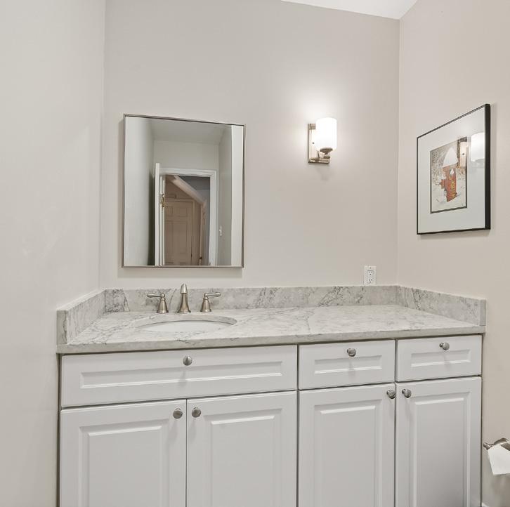 • Primary bath offers dual sinks, walk-in shower, whirlpool tub, travertine flooring and granite counters