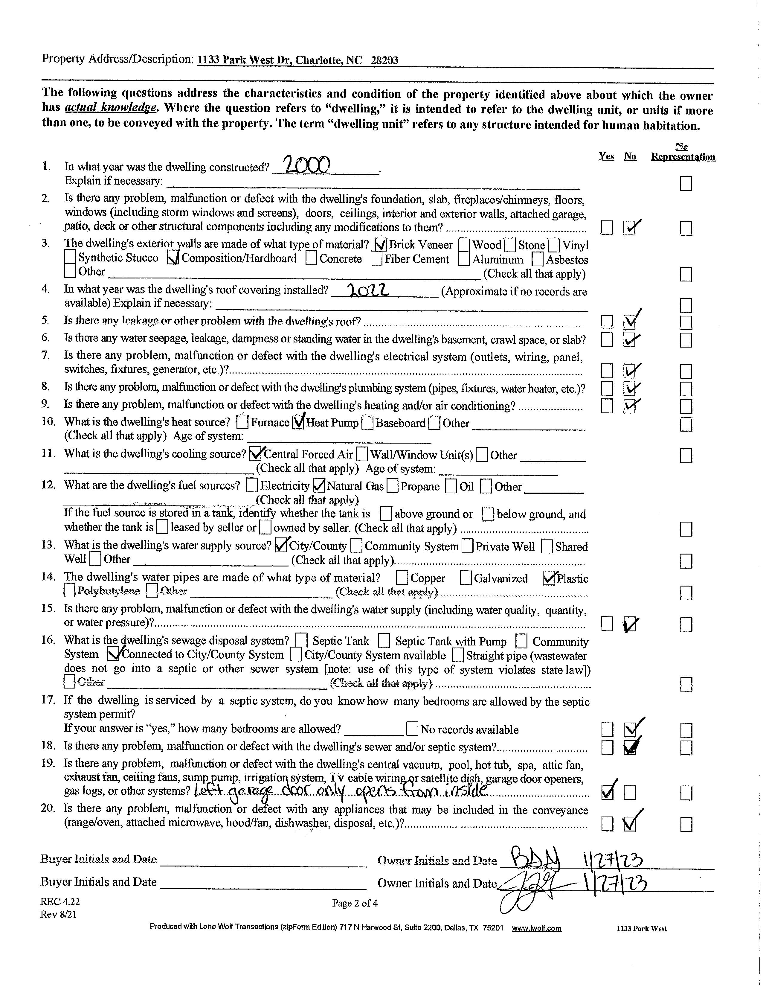 The Oakley Zoning Desc: Deed Ref: 28978-271 Legal Desc: UNIT 1133 U/F 544-1 Lot/Unit #: Approx Acres: Approx Lot Dim: Lot Desc: Elevation: List Price: $425,000 General Information School Information Type: 1 Story Elem: Dilworth/Sedgefield Style: Middle: Sedgefield Construction Type: Site Built High: Myers Park HLA Non-HLA Sqft Bldg Information Main: 1,227 Main: 0 Beds: 2 Upper: 0 Upper: 0 Baths: 2/0 Third: 0 Third: 0 Year Built: 2000 Lower: 0 Lower: 0 New Const: No Bsmnt: 0 Bsmt: 0 Prop Compl Date: Above Grade: 1,227 Construct Status: Total Primary HLA: 1,227 Total: 0 Builder: Pets: Additional Information Prop Fin: Assumable: