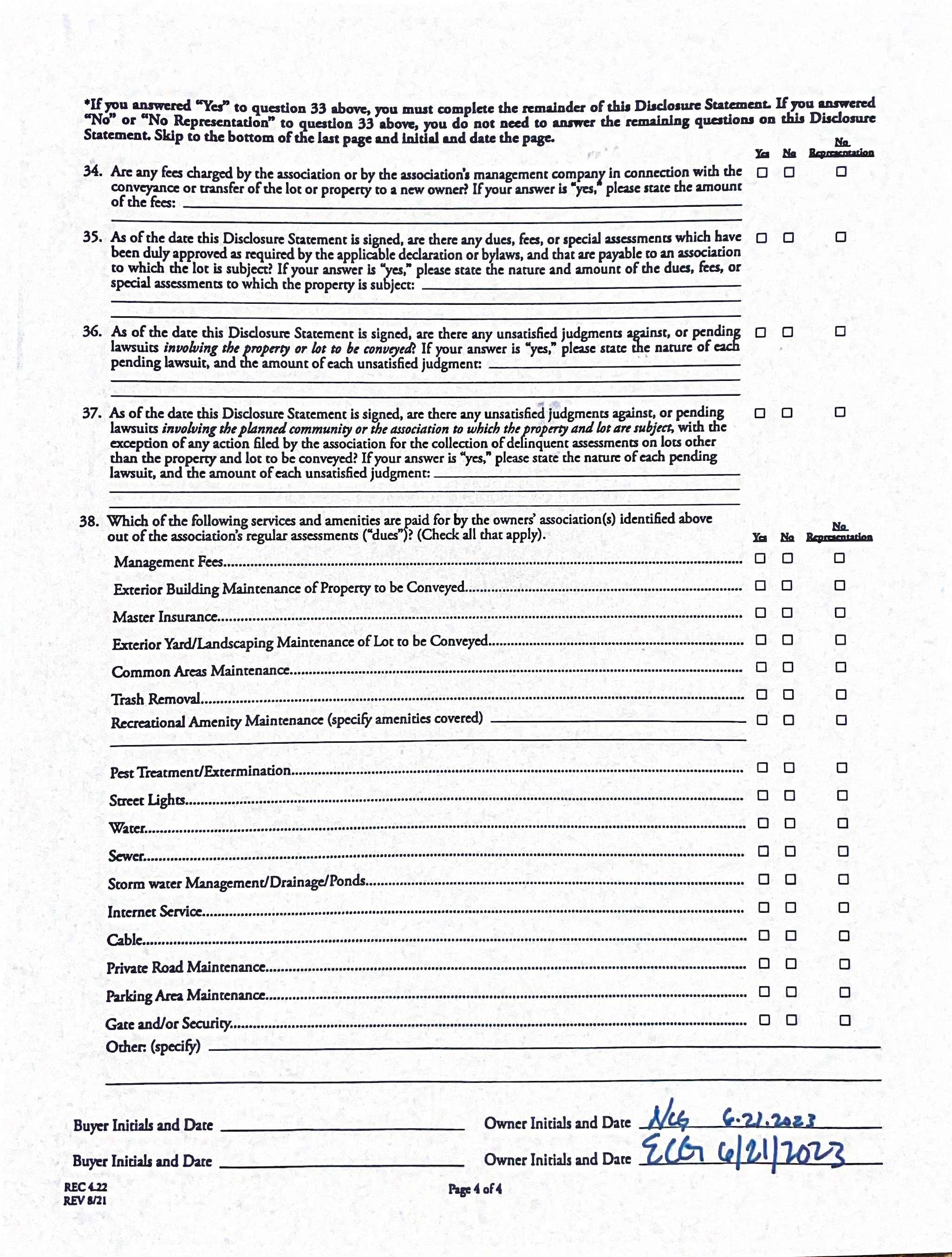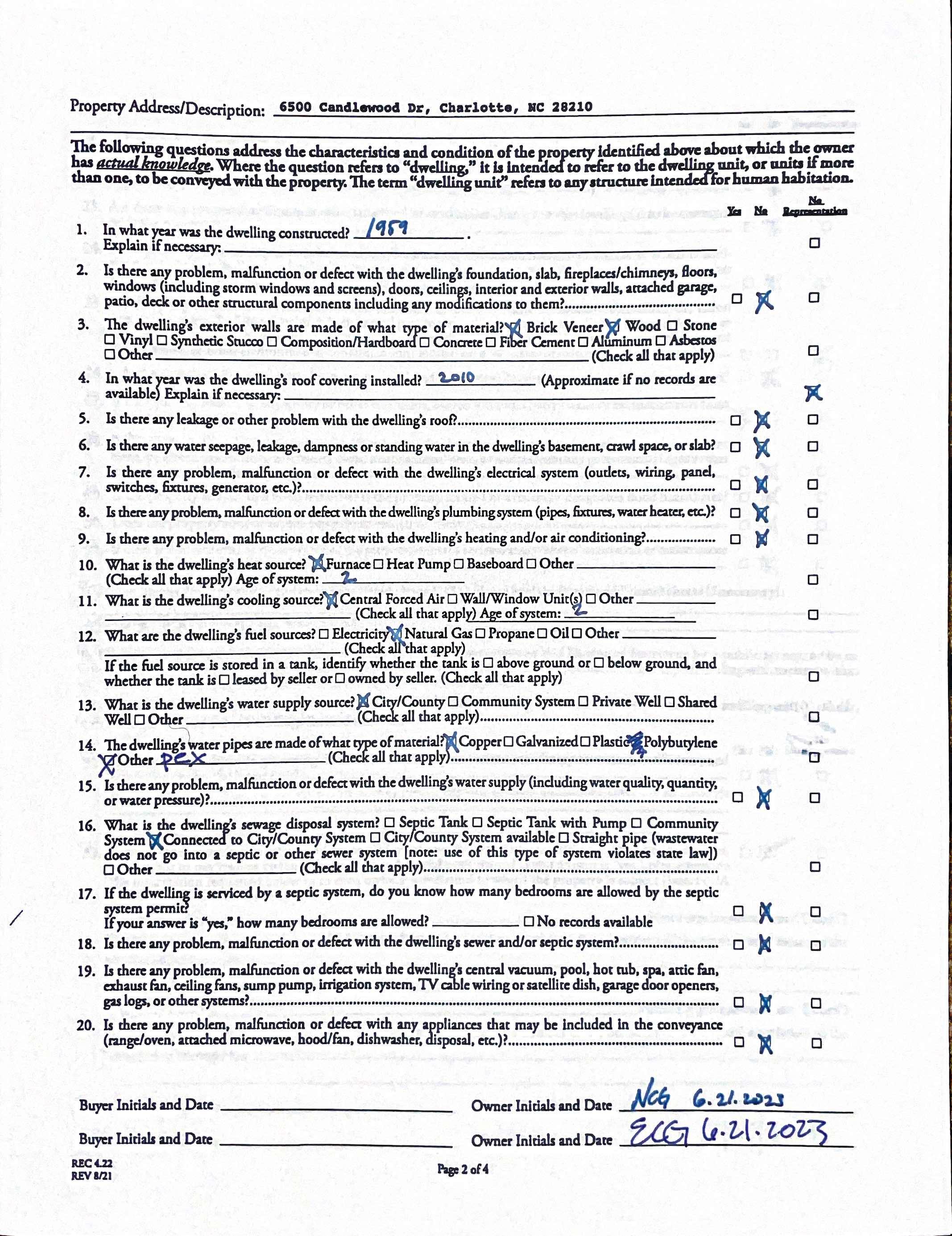 THE NORTH CAROLINA ASSOCIATION OF REALTORS, INC. AND THE NORTH CAROLINA BAR ASSOCIATION MAKE NO REPRESENTATION AS TO THE LEGAL VALIDITY OR ADEQUACY OF ANY PROVISION OF THIS FORM IN ANY SPECIFIC TRANSACTION. IF YOU DO NOT UNDERSTAND THIS FORM OR FEEL THAT IT DOES NOT PROVIDE FOR YOUR LEGAL NEEDS, YOU SHOULD CONSULT A NORTH CAROLINA REAL ESTATE ATTORNEY BEFORE YOU SIGN IT.