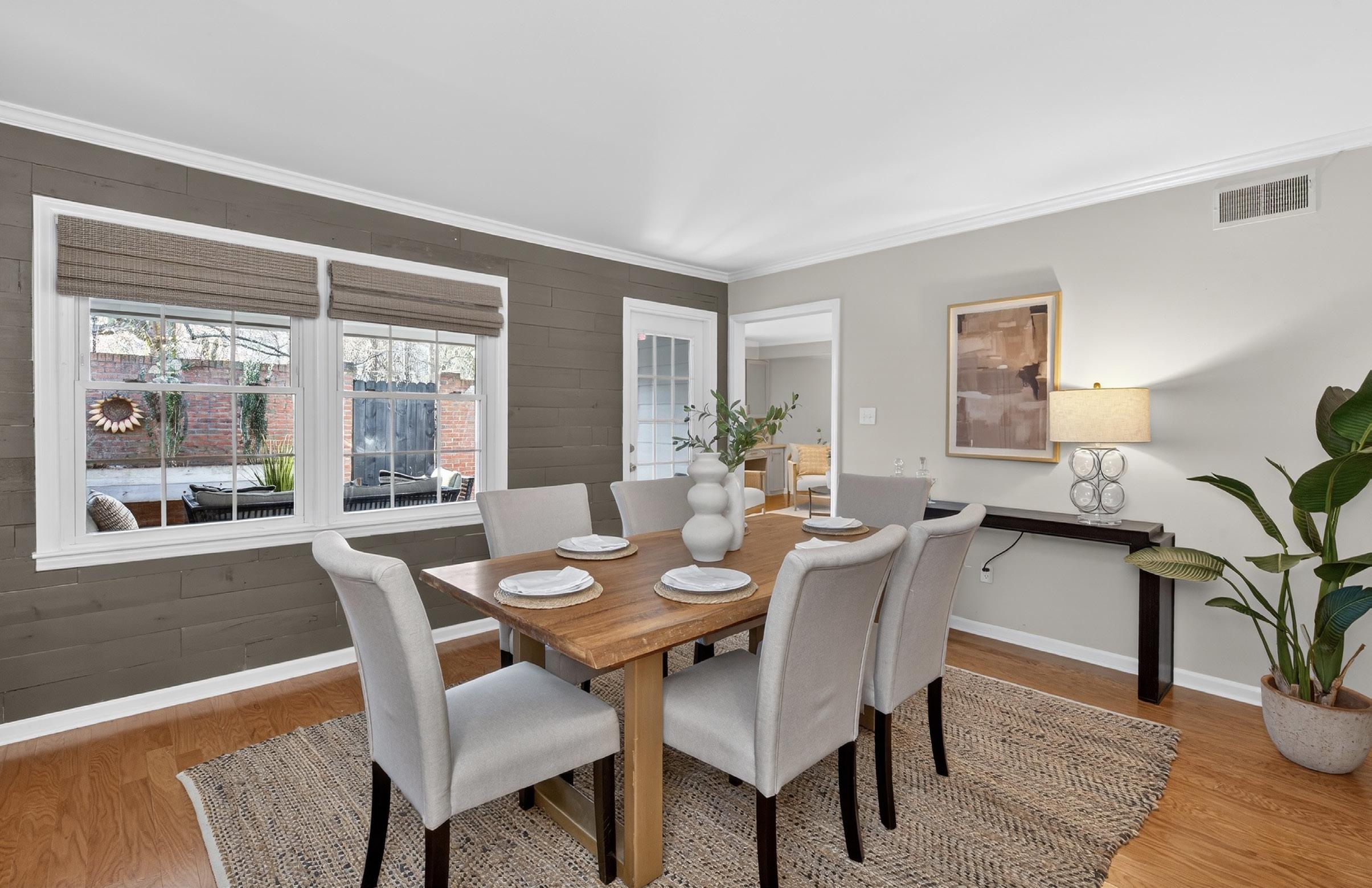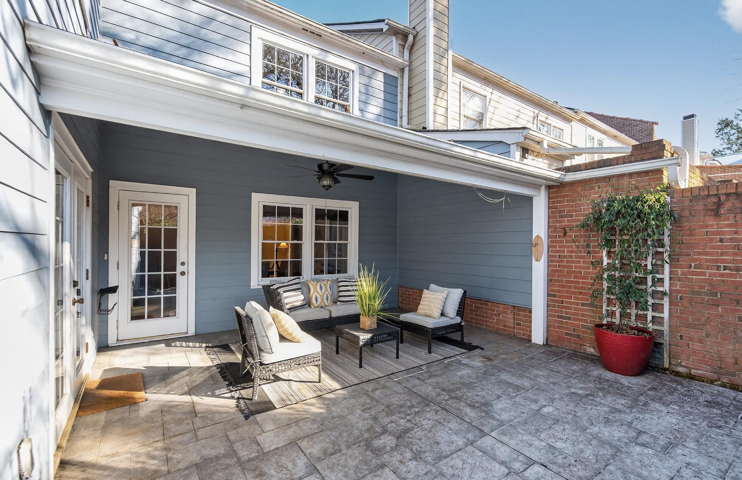 restaurants and retail. Tucked within the coveted The Meadows community, the 2-story, brick townhome backs directly up to peaceful walking trails—offering a rare balance of convenience and privacy. The spacious 4-bedroom, 2.5-bath floorplan is designed for both everyday living and entertaining, featuring a large, lightfilled dining room, an updated spacious kitchen with eat-in flexibility, and a welcoming family room centered around a cozy fireplace. The upstairs generously sized Primary Suite showcases designer wallpaper, custom wall trim details, and a timeless spa-inspired Bath with classic white subway tile, marble finishes, and dual vanities. Three additional Secondary Bedrooms provides exceptional flexibility for guests, family, or a dedicated Home Office. Enjoy outdoor living on the private rear Patio with covered roof, perfect for lazy afternoons, evening cocktails or Family/Friends entertaining. Plus it comes with the convenience of two designated parking spaces are directly in front of the property, with ample available guest parking for any visitors. All of this in a premier SouthPark location that truly defines effortless, "walkable" Townhome living.