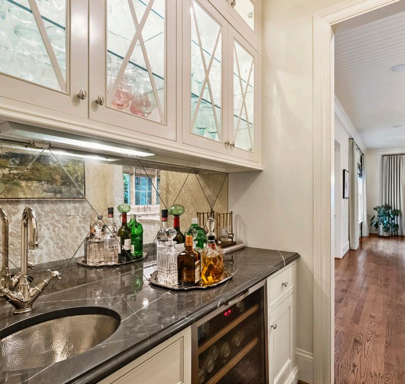 • The wet bar connecting the kitchen and dining room is perfect for entertaining