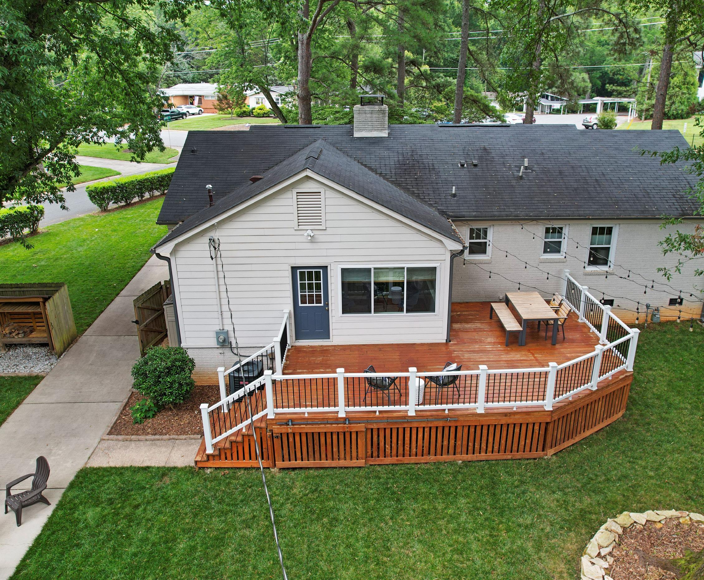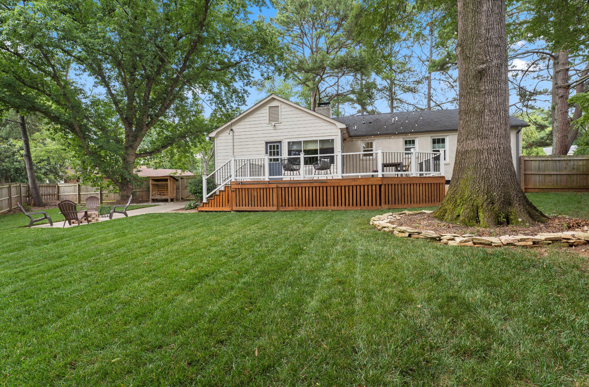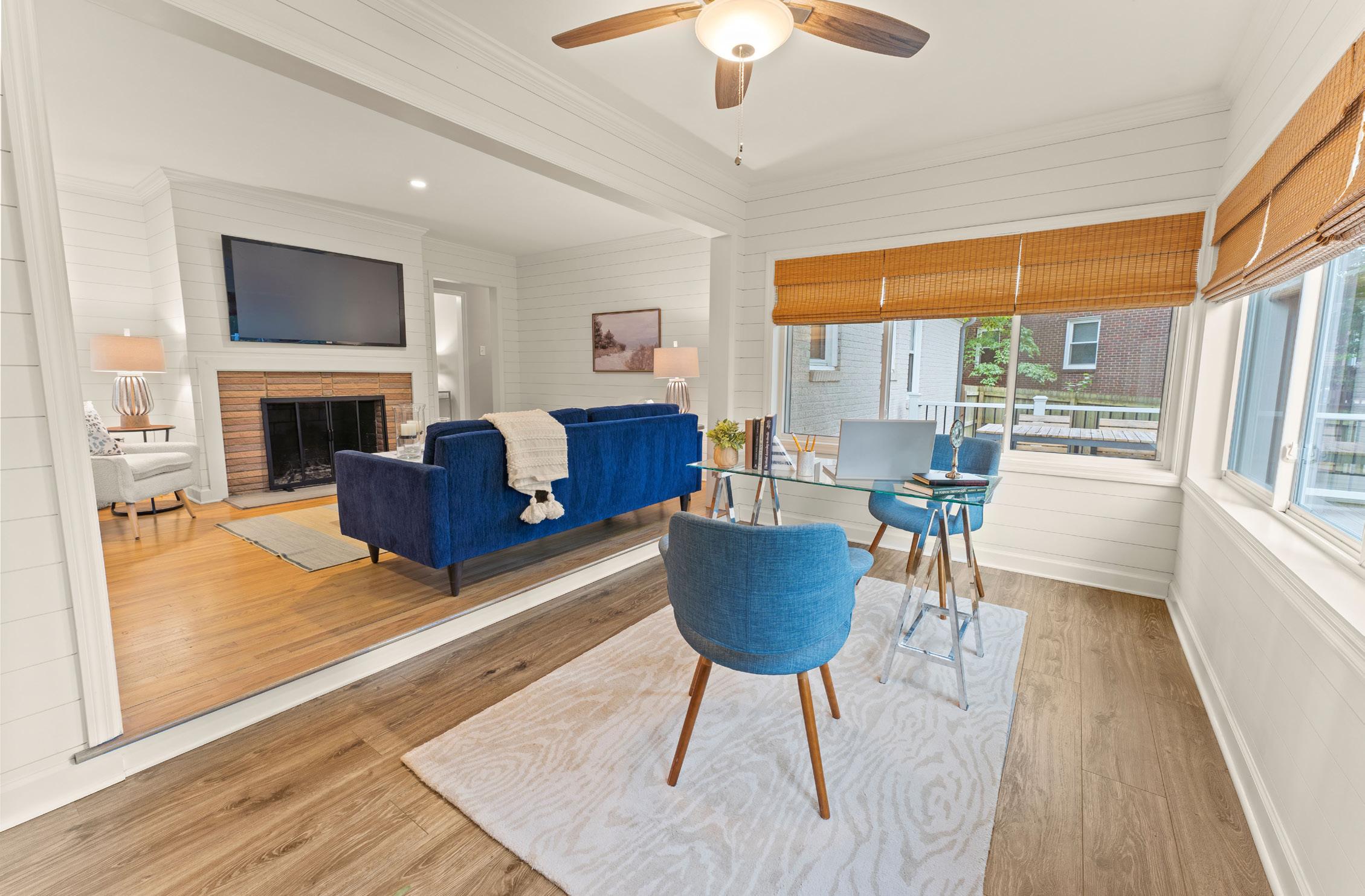 Immaculate ranch style home that has been thoughtfully renovated in the highly sought after Madison Park neighborhood. You’ll love the updated kitchen w/quartz countertops, painted cabinetry, stainless steel appliances, gas stove top and a kitchen island with seating for two. The kitchen is open to both the dining area and the den, where a wood-burning fireplace anchors the space. Original hardwood floors are in excellent condition & run throughout the home - except in the bathrooms & flex space area. The flex space is used as an office but could serve many purposes - such as additional seating for entertaining, a game room, playroom or sunroom. The primary suite features a walk-in closet and custom shades. The primary bathroom has dual vanities & a tiled shower with glass doors. Custom closet systems are in each bedroom. The home sits on a large corner lot w/a fully fenced back yard. The expansive deck & firepit make the back yard perfect for spending time outside in any season. Visit