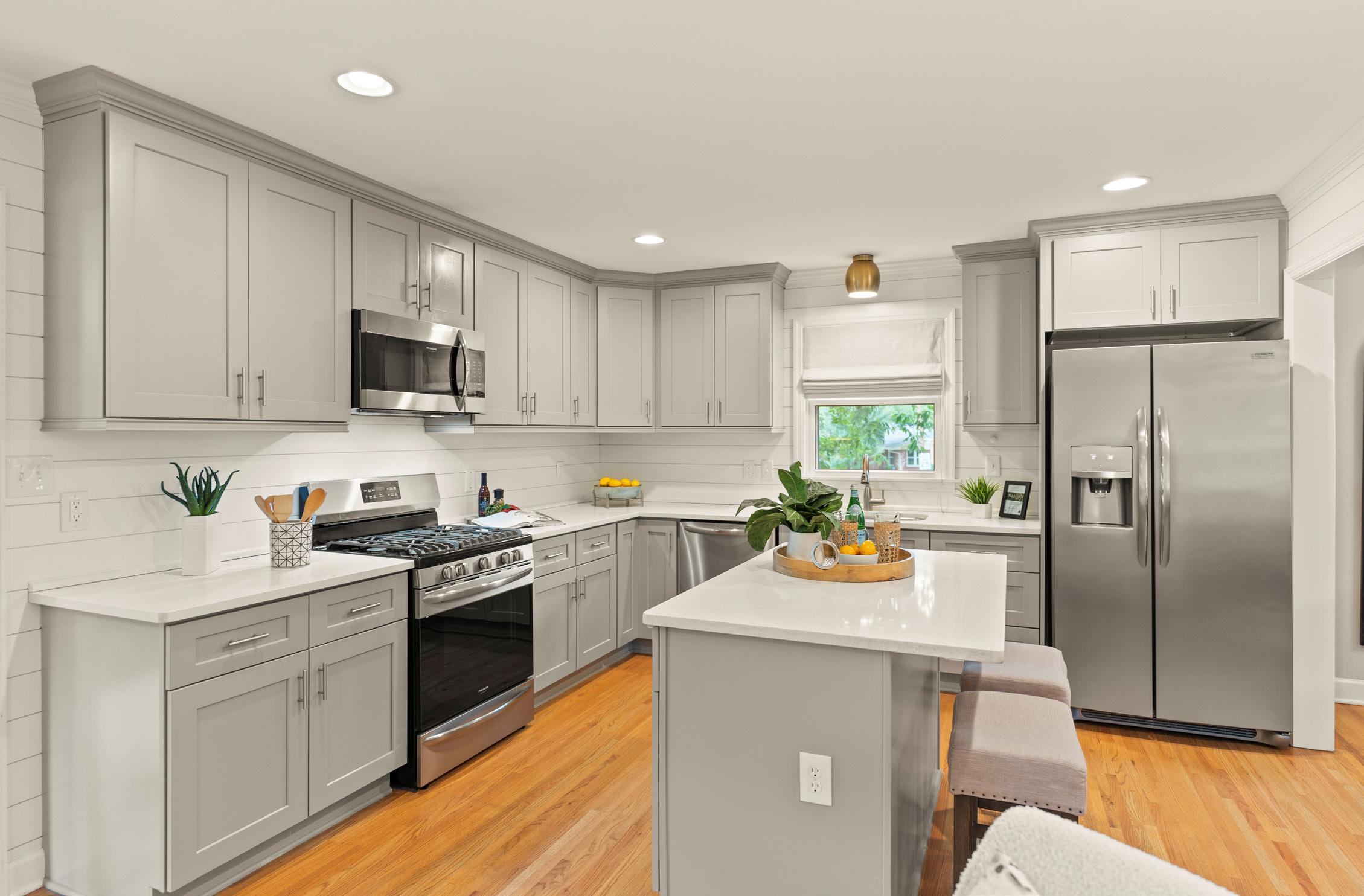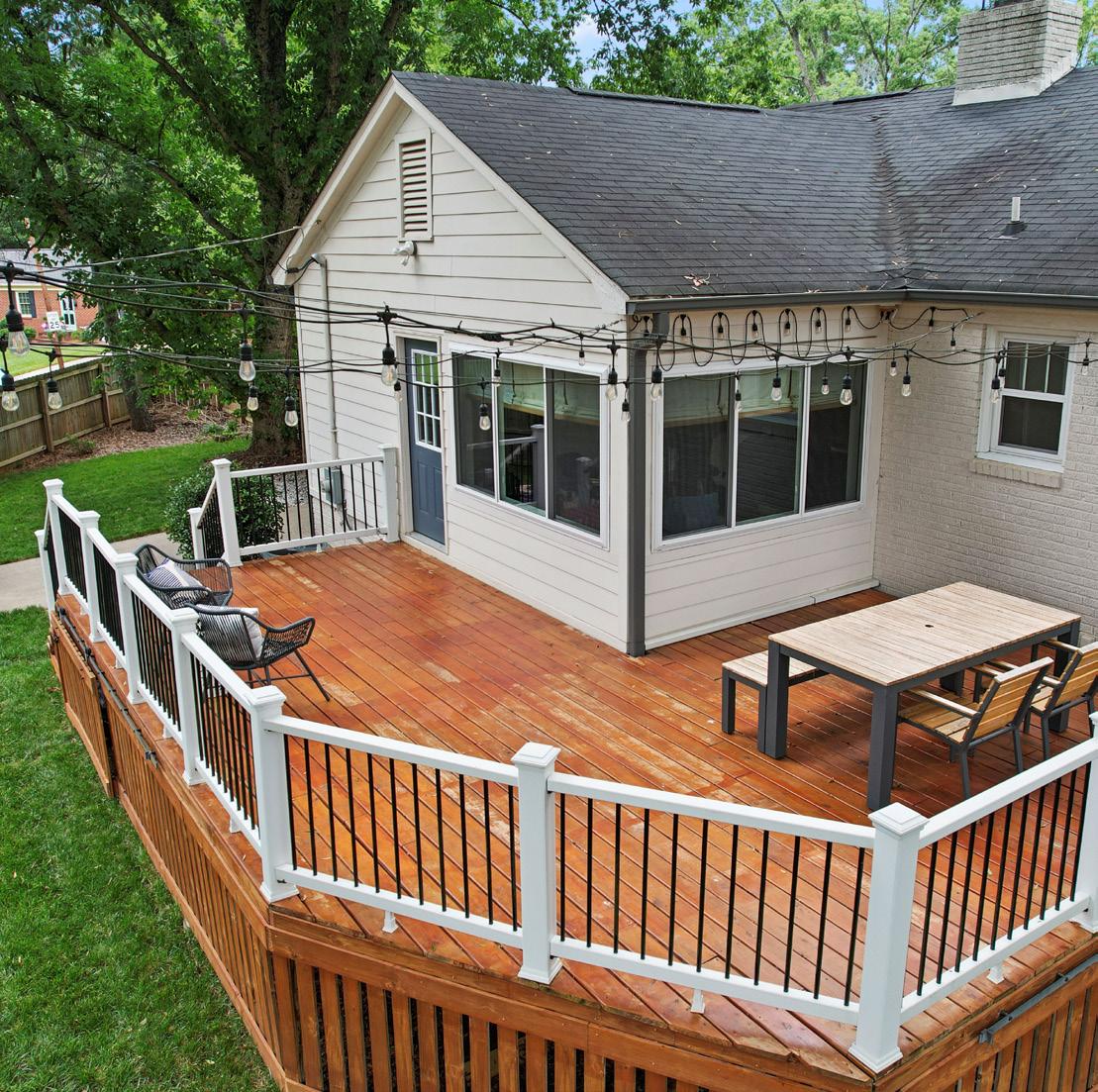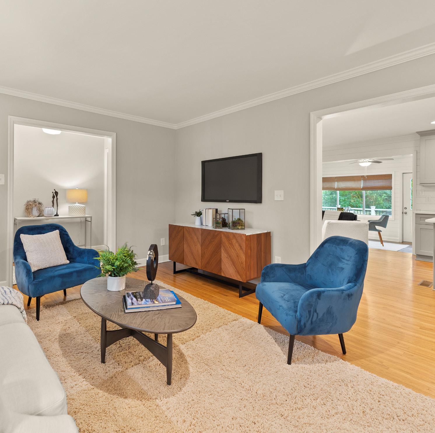 Immaculate ranch style home that has been thoughtfully renovated in the highly sought after Madison Park neighborhood. You’ll love the updated kitchen w/quartz countertops, painted cabinetry, stainless steel appliances, gas stove top and a kitchen island with seating for two. The kitchen is open to both the dining area and the den, where a wood-burning fireplace anchors the space. Original hardwood floors are in excellent condition & run throughout the home - except in the bathrooms & flex space area. The flex space is used as an office but could serve many purposes - such as additional seating for entertaining, a game room, playroom or sunroom. The primary suite features a walk-in closet and custom shades. The primary bathroom has dual vanities & a tiled shower with glass doors. Custom closet systems are in each bedroom. The home sits on a large corner lot w/a fully fenced back yard. The expansive deck & firepit make the back yard perfect for spending time outside in any season. Visit