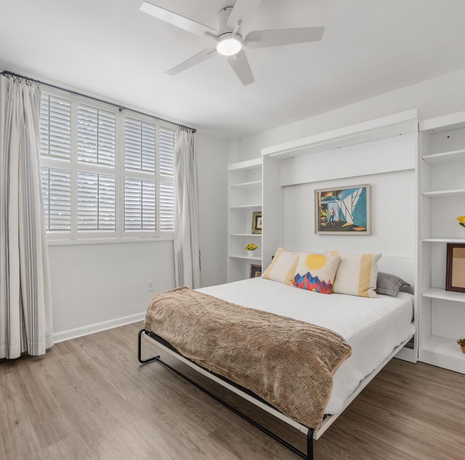 Public Rmrks: Bright, expansive, and exceptionally rare — welcome to Residence #200 at The Kimberlee, Myers Park’s iconic Art Deco co-op! Offering an oversized 1,656 square feet — a true rarity in this building — this loft-like home has been thoughtfully reimagined into a sophisticated two-bedroom/1.5 bath retreat. Sunlight pours into the open-concept great room, where tree-lined views and an airy layout create an atmosphere that feels both elegant and serene. Two private balconies invite morning coffee above the canopy and golden-hour sunsets overlooking one of Charlotte’s most beloved neighborhoods. Privately positioned at the far end of the residence, the primary suite is wrapped in high-end designer wallpaper and features a generous walk-in closet with future potential for a second full bath. The guest room includes a custom Murphy bed that offers seamless flexibility for guests or a stylish home office. Recent designer updates — including new appliances,