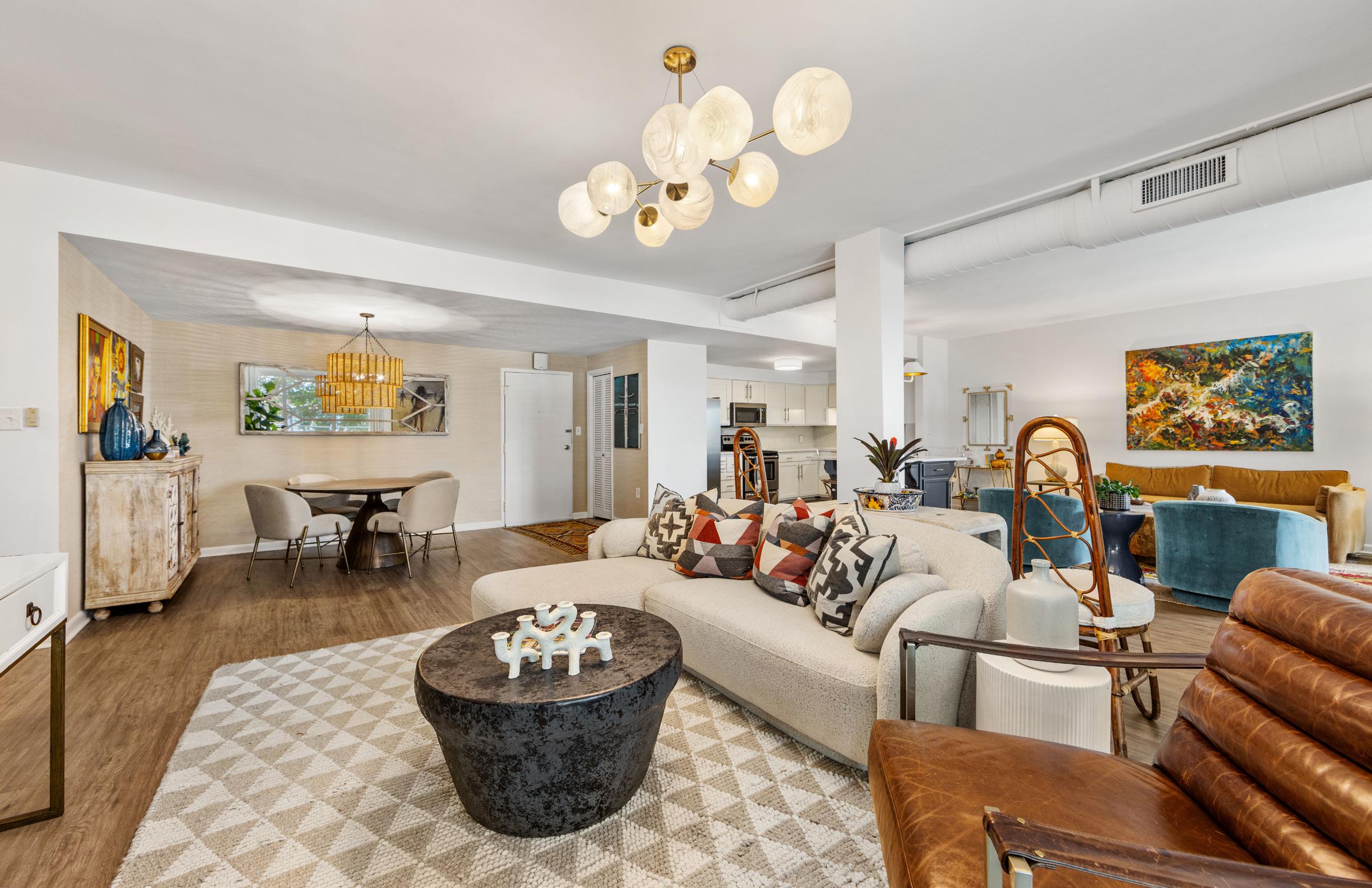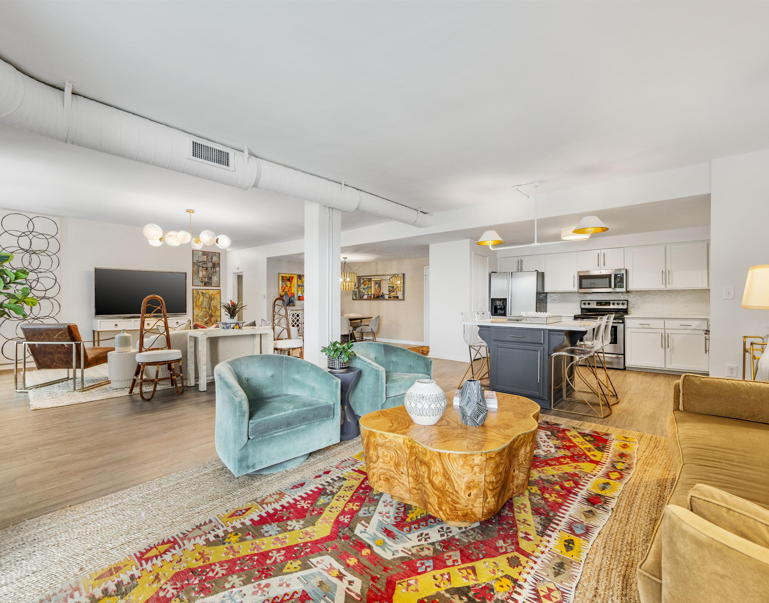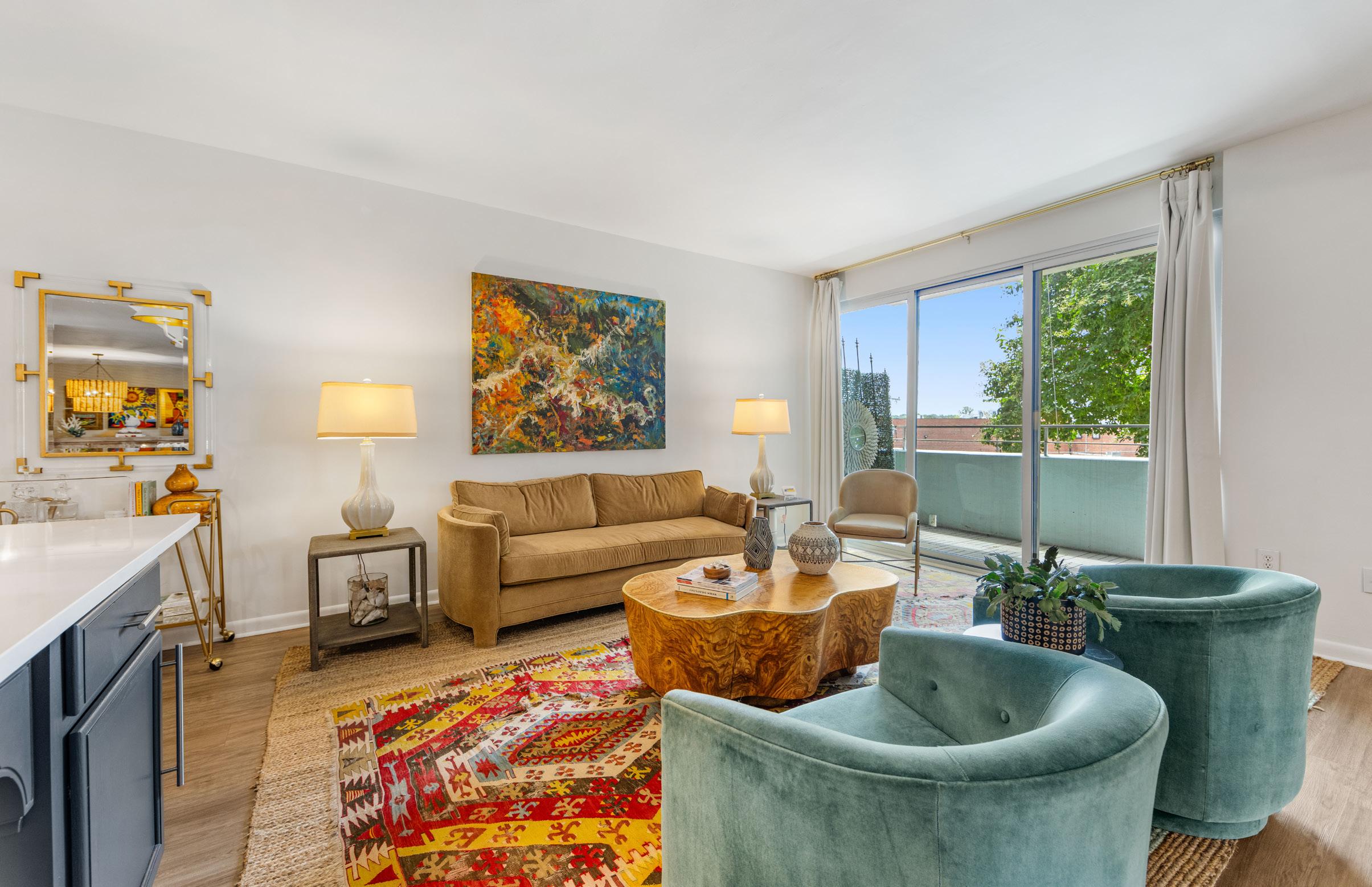 Bright, expansive, and exceptionally rare — welcome to Residence #200 at The Kimberlee, Myers Park’s iconic Art Deco co-op! Offering an oversized 1,656 square feet — a true rarity in this building — this loft-like home has been thoughtfully reimagined into a sophisticated twobedroom/1.5 bath retreat. Sunlight pours into the open-concept great room, where tree-lined views and an airy layout create an atmosphere that feels both elegant and serene. Two private balconies invite morning coffee above the canopy and golden-hour sunsets overlooking one of Charlotte’s most beloved neighborhoods. Privately positioned at the far end of the residence, the primary suite is wrapped in high-end designer wallpaper and features a generous walk-in closet with future potential for a second full bath. The guest room includes a custom Murphy bed that offers seamless flexibility for guests or a stylish home office. Recent designer updates — including new appliances, fresh paint, and elevated lighting fixtures — enhance the home’s timeless character while delivering modern comfort. Life at The Kimberlee is truly turnkey. Amenities include deeded parking, 2 private storage lockers, resort-style pool, Sky Lounge with full kitchen, guest suite, fitness center, community garden, and a private owner’s bridge providing direct access to Park Road Shopping Center. Freedom Park and the Greenway are just moments away. The monthly HOA covers property taxes, water, sewer, cable, Wi-Fi, and building maintenance — offering simplified, lock-and-leave living in one of Charlotte’s most coveted neighborhoods.