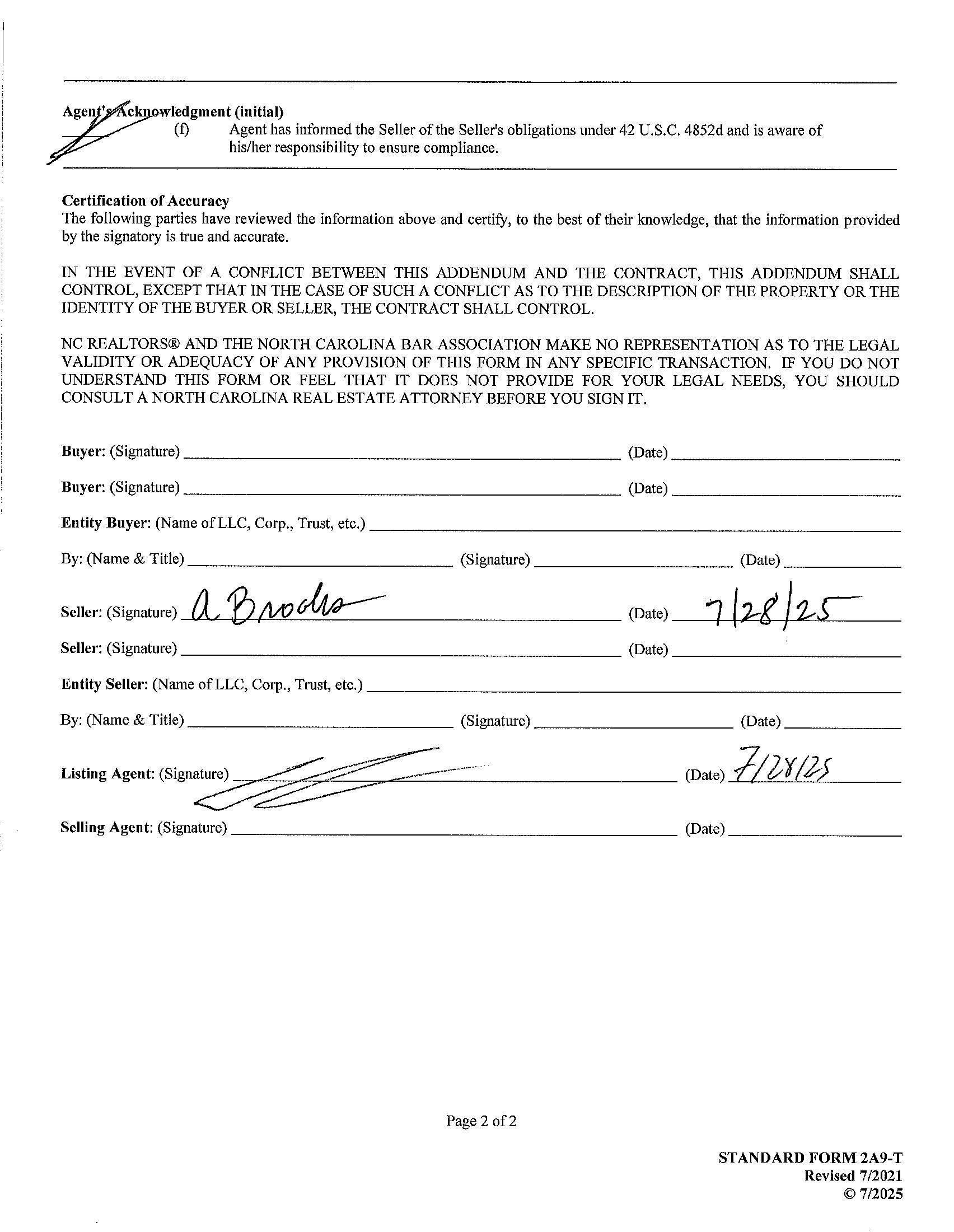 Ownership: Seller owned for at least one year