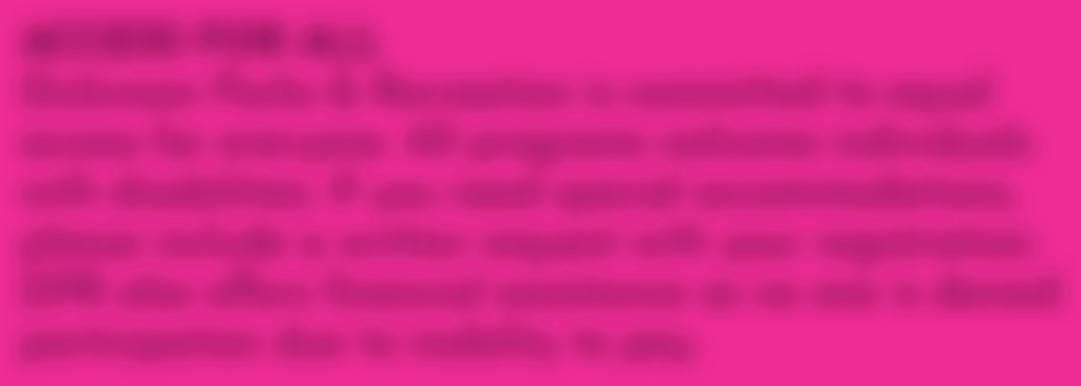 Dickinson Parks & Recreation is committed to equal access for everyone. All programs welcome individuals with disabilities. If you need special accommodations, please include a written request with your registration. DPR also offers financial assistance so no one is denied participation due to inability to pay.