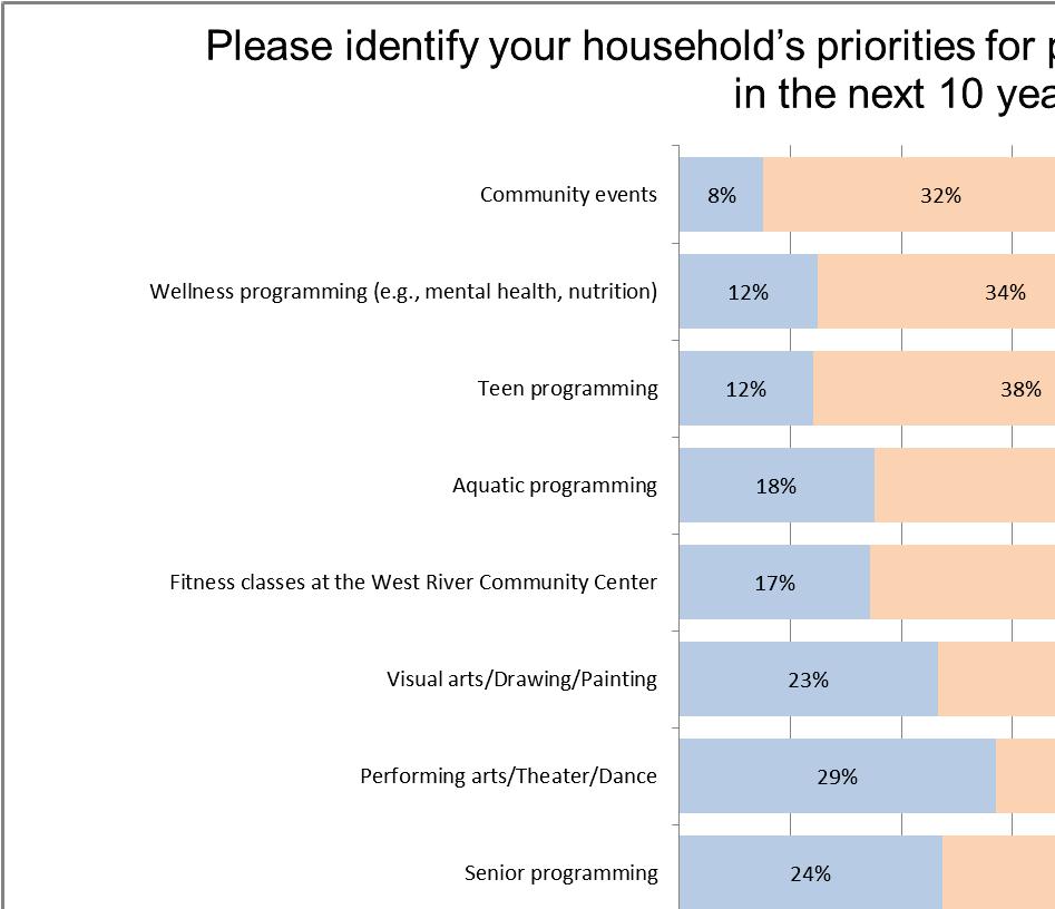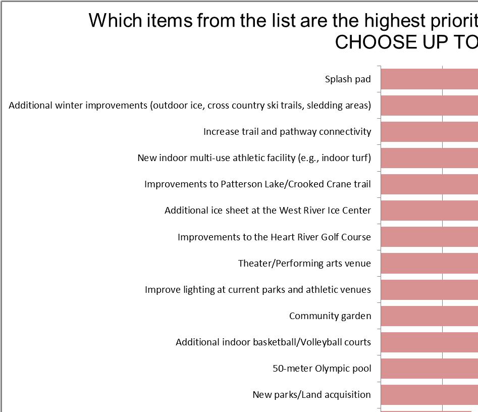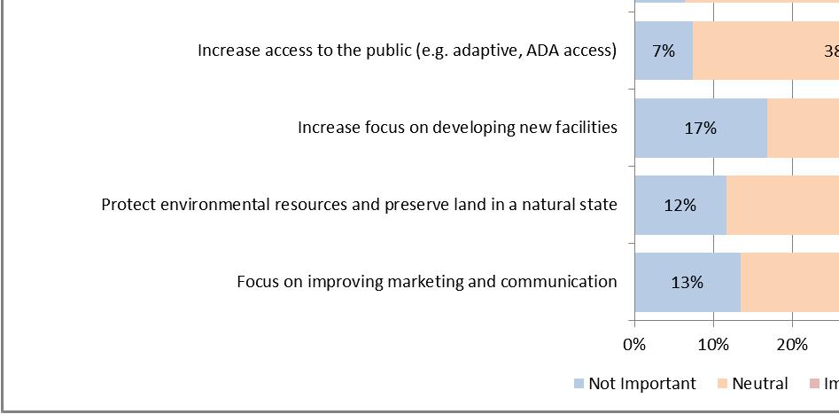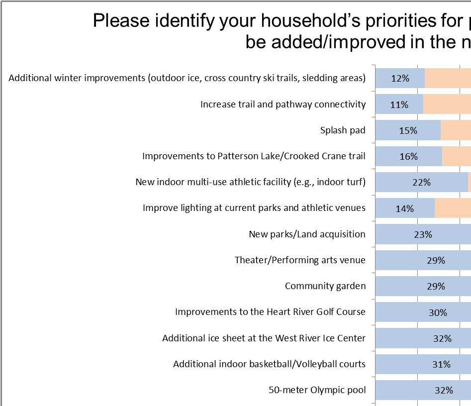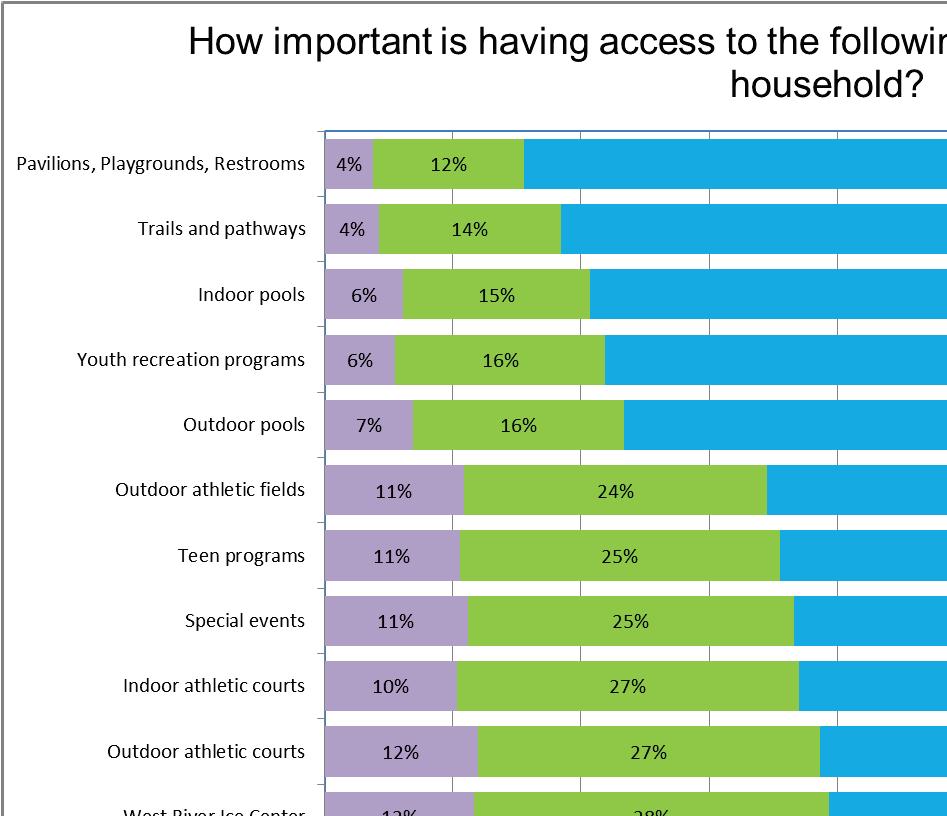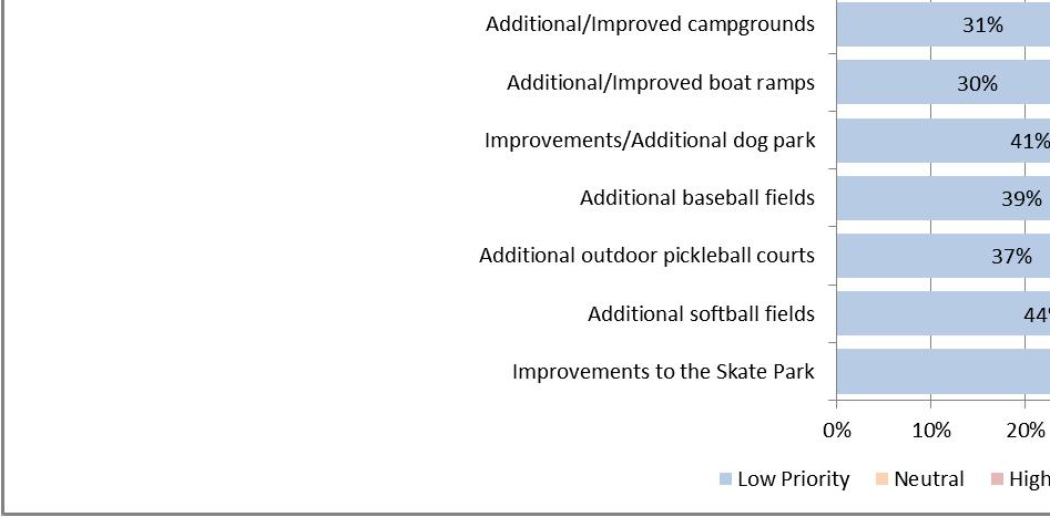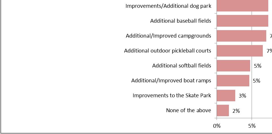 Secondary: Swimming/specialty pools, winter activities infrastructure, canoe/kayak infrastructure.